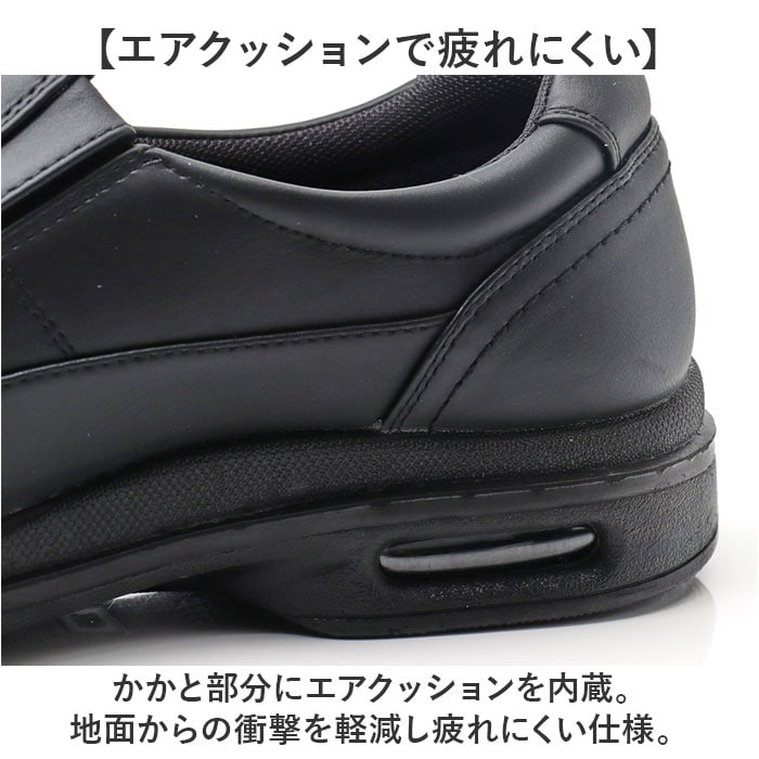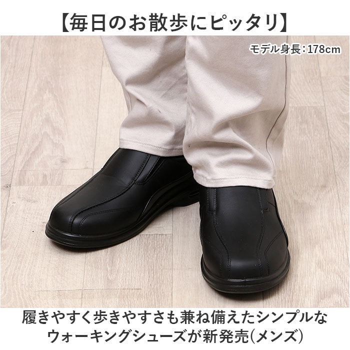 | 商品説明 | 【毎日のお散歩にピッタリ】履きやすく歩きやすさも兼ね備えたシンプルなウォーキングシューズが新発売。(メンズ)【ゆったりと履ける4E設計】日本人の足の形に合わせた幅広設計。ワイドな4E仕様で締め付け感がなくストレスフリー♪【手間なく履けるスリッポン式】靴ひもを結ぶ手間がないスリッポンタイプのシューズ。サイドにゴム入りで履きやすさも◎【履き心地柔らか】アッパー内側とインソール部分はソフトな素材を使用し、柔らかな履き心地も魅力の1つ。【カップインソールでズレにくい】足をしっかりホールドするカップインソールで、歩いているときに位置がズレにくいのも◎【エアクッションで疲れにくい】かかと部分にエアクッションを内蔵。地面からの衝撃を軽減し疲れにくい仕様。【ラフ過ぎない合皮素材】スムース調の合皮を使用。程よい光沢感もありラフすぎず、年代問わず使える。【コーデを選ばないシンプルさ】シンプルデザインと派手過ぎないカラーでどんなコーデとも相性抜群♪【普段使いや通勤にも】シンプルな見た目と歩きやすさで普段のお出かけや通勤用にもオススメ! |