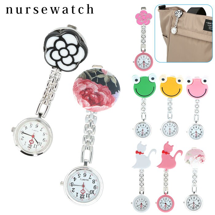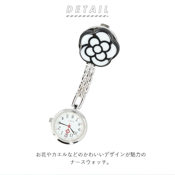 | 商品説明 | お花やカエルなどのかわいいデザインが魅力のナースウォッチ。デザイン性はもちろん、時計の数字が大きくパッと見で時間を把握しやすい。持ち運び簡単な丁度良い大きさで、ポケットに挟んでおけば、じゃまにならない。可愛いデザインなのでバッグなどにも付けられる。 |