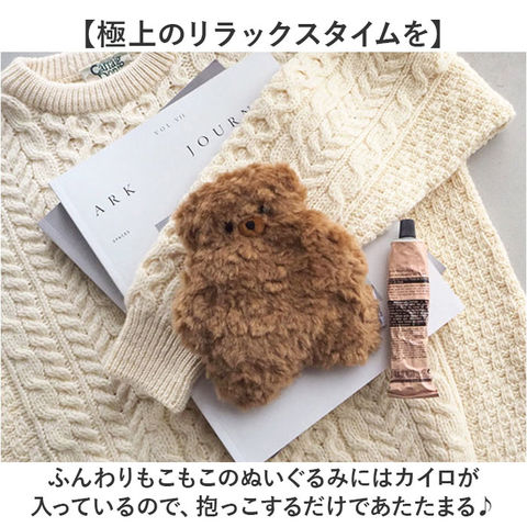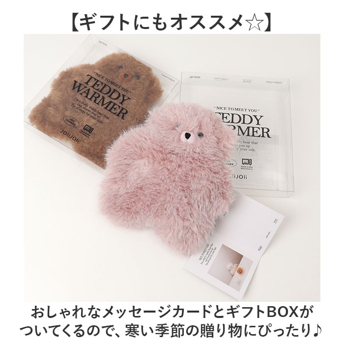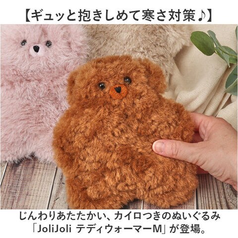 | 商品説明 | 【ギュッと抱きしめて寒さ対策♪】じんわりあたたかい、カイロつきのぬいぐるみ「JoliJoli テディウォーマーM」が登場。【極上のリラックスタイムを】ふんわりもこもこのぬいぐるみにはカイロが入っているので、抱っこするだけであたたまる♪【繰り返し使えるエコアイテム】電子レンジであたためて使用する保温剤は、繰り返し使える作り。寒いと感じたら手軽にチン!【手元にそっと置けるサイズ感】手のひらよりひと回り大きい、手軽に使えるサイズ感。いつも傍に置いておける、可愛い相棒♪【手洗いOKのベアちゃん】汚れが気になったら、ベアのカバーは手洗い可能。いつでも清潔さをキープできる◎【ギフトにもオススメ☆】おしゃれなメッセージカードとギフトBOXがついてくるので、寒い季節の贈り物にぴったり♪ |