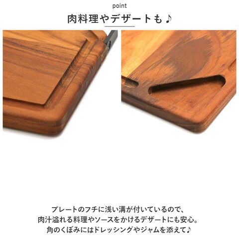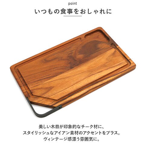 | 商品説明 | 温もりのある天然木を使ったプレート。マルチに活躍するPlate iron handle(プレートアイロンハンドル)が新登場。【いつもの食事をおしゃれに】美しい木目が印象的なチーク材に、スタイリッシュなアイアン素材のアクセントをプラス。ヴィンテージ感漂う雰囲気に。【使い方いろいろ】食材を切るためのカッティングボード、料理を盛り付けるプレートとしても!割れにくい素材で、キャンプなどのアウトドアシーンにもおすすめ。【肉料理やデザートも♪】プレートのフチに浅い溝が付いているので、肉汁溢れる料理やソースをかけるデザートにも安心。角のくぼみにはドレッシングやジャムを添えて♪【コンパクトサイズ】少量の食材をカットしたり、チーズなどのオードブルなどを乗せるのにぴったり。 |