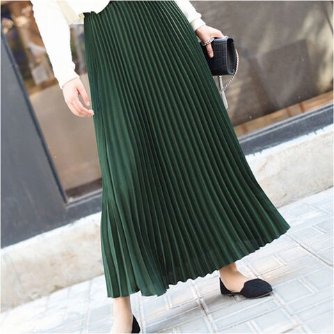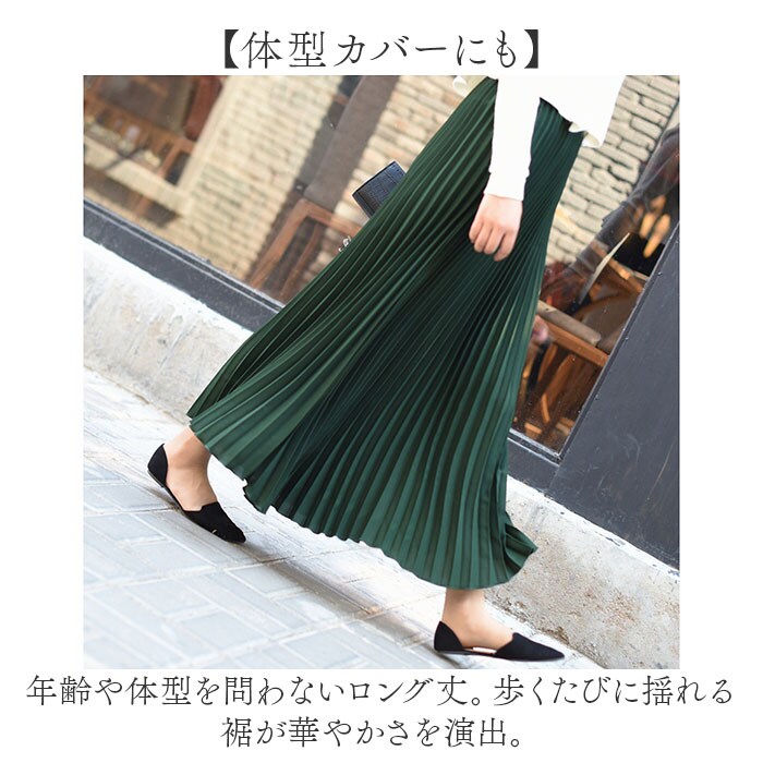 スカート プリーツ ロング レディース おしゃれ【ダークグリーン】【90CM】