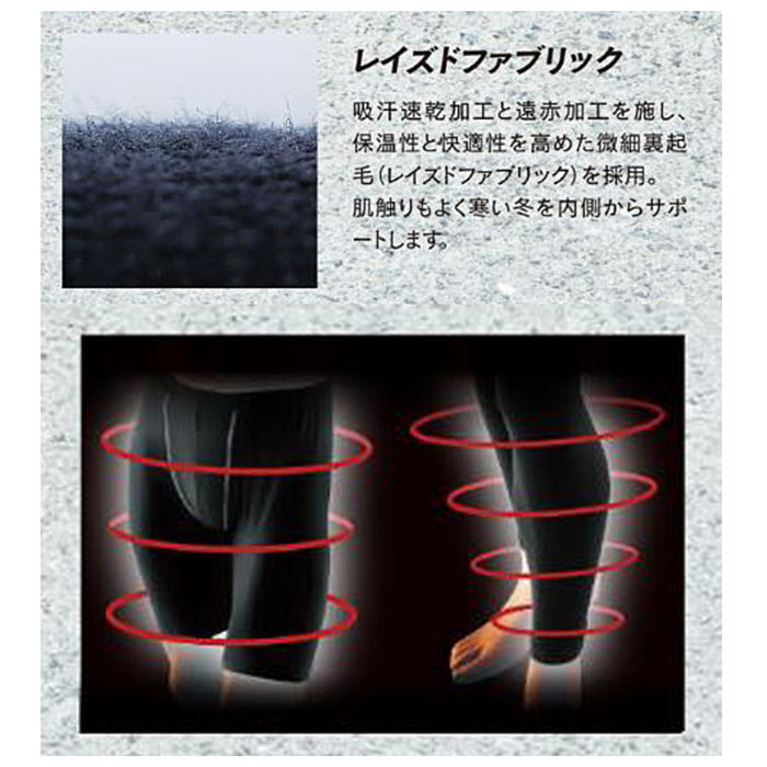 | 商品説明 | アスリートからワーカーまで、身体を資本とする全ての人に。伸縮自在で動きやすい、BODY-TOUGHNESS(R) ボディタフネスパワーストレッチロングタイツ(前開きタイプ)。身体のラインに合わせて素材が伸縮。生地のダブつきがなく肌にしっかりと密着することで、動きやすく温かい。汗のベトつきや汗冷えを防ぐ吸汗速乾加工を施した肌触りのよい微細裏起毛「レイズドファブリック」を採用し、快適さをキープ。さらに遠赤加工により、寒い冬を内側からサポート。しんしんと足元から冷える寒い日も、寒さから足腰をしっかりと守る。ランニングなど冬場もトレーニングを欠かさないアスリートの方や、登山などのアウトドアアクティビティーに。ワーキング系男子の作業着のインナーとしても最適。 |