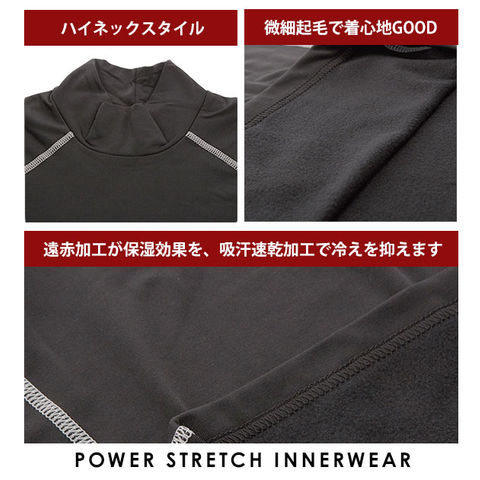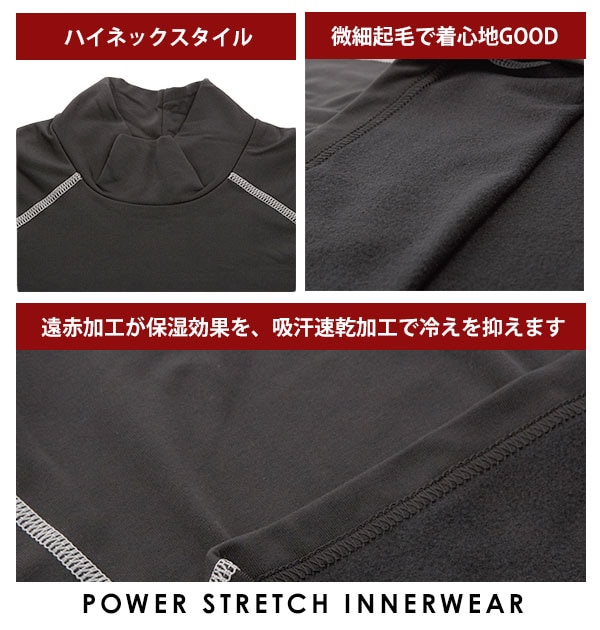 | 商品説明 | アスリートからワーカーへ!! 伸縮自在で動きやすい、ハイネックタイプのパワーストレッチ インナーシャツです。 吸汗速乾加工により、ベトつきや冷えを抑え、快適さをキープします。 肌ざわりがよく、保湿効果の高いレイズドファブリックを使用し、 裏起毛+遠赤加工が保湿をさらに高め、身体のラインに合わせてダブつきなく、 肌に密着するように伸縮するので、動きやすく暖かいです。 適度な圧力が身体をサポートします。 |