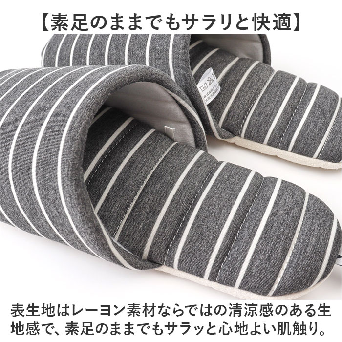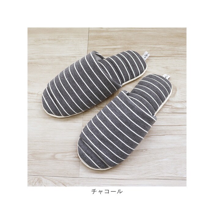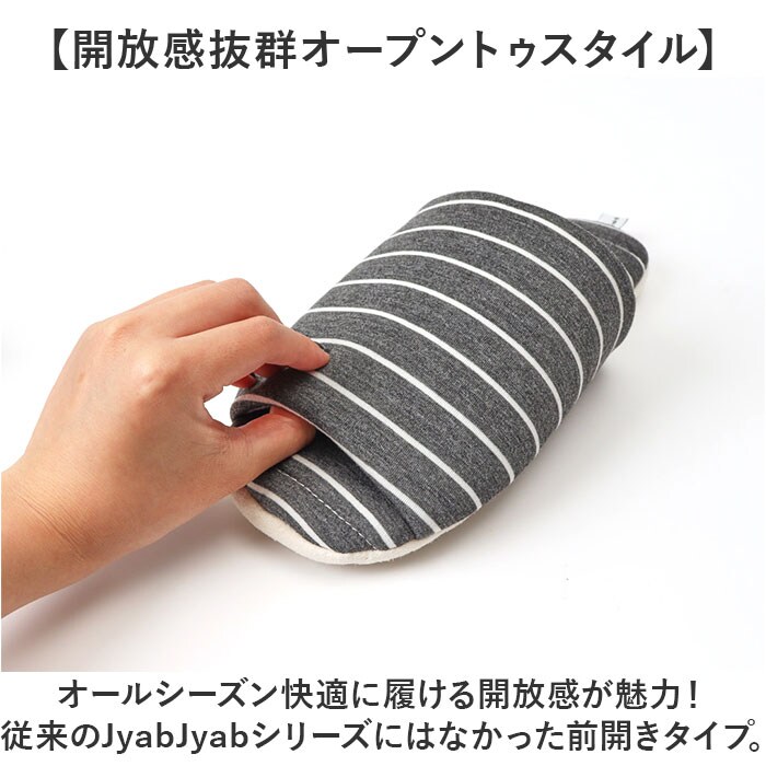 JyabJyab 前あきボーダースリッパ【チャコール】【Lサイズ】