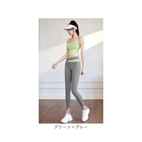 ヨガウェア 上下セット 体型カバー【グリーン×グレー】【Sサイズ】