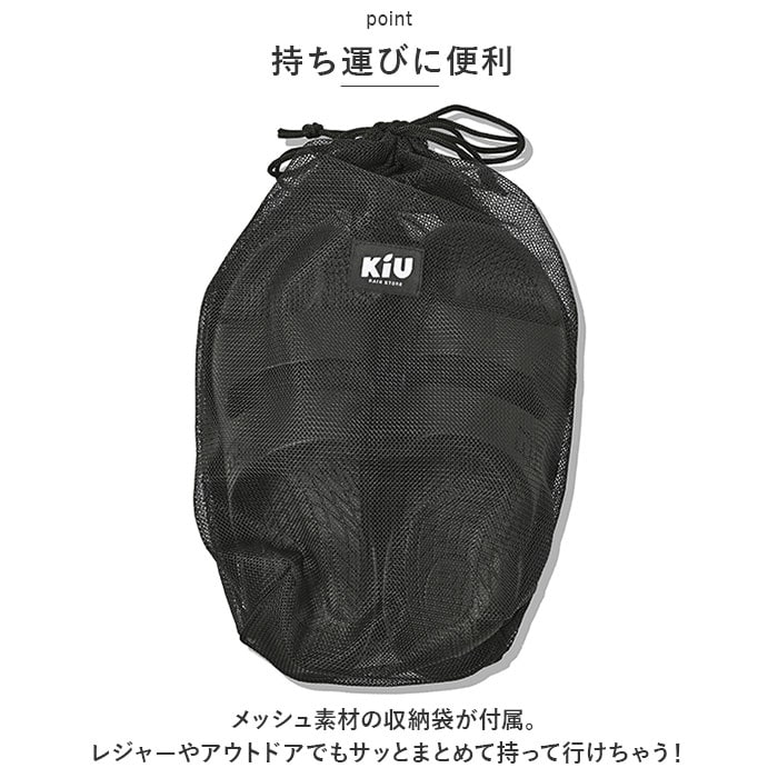 | 商品説明 | デイリー使いからアウトドアまで、幅広く活躍!「KiU」から、機能性の高いリカバリーサンダルが新登場。【KiU-キウ】・「どんな天気でもその場を楽しむ」をモットーに、大人の外遊びを応援するブランド。【サッと履けるスライドタイプ】素足でも靴下を履いたままでも、スムーズに足入れ♪自宅用としてだけでなく、ちょっとしたお出かけなどにもおすすめ。【足にかかる負担を軽減】衝撃を吸収し、クッション性もある厚底のEVA素材を採用!足底圧を分散できて、素足での移動も疲れにくい♪【雨の日も夏のレジャーでも】水に強く、雨の日はもちろん、プールや海水浴などのレジャーシーンではビーチサンダル代わりに!汚れが気になったら水洗いできて、お手入れもラクラク。【滑りにくい凹凸ソール】凹凸のあるアウトソールで、安定した歩行をサポート。【カジュアルコーデに馴染むデザイン】シンプルなワンカラーに、アッパーやインソールに配置したオリジナルロゴがアクセント。【お揃いで履けるユニセックス仕様】家族やご夫婦、カップルでペア使いできる5サイズをラインナップ。【持ち運びに便利】メッシュ素材の収納袋が付属。レジャーやアウトドアでもサッとまとめて持って行けちゃう! |
