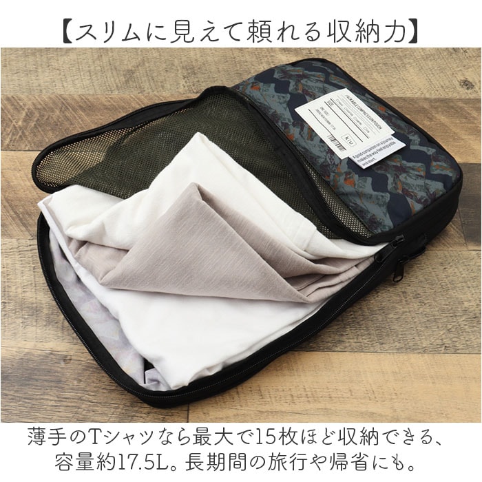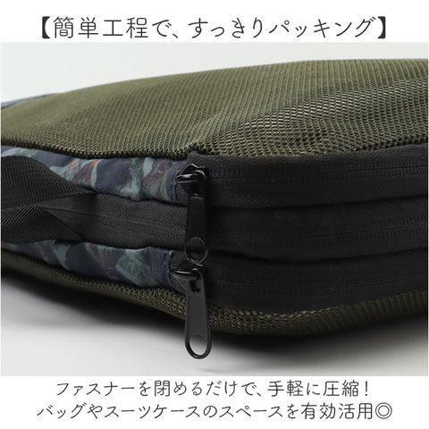 | 商品説明 | 【旅の荷物をコンパクトに圧縮】トラベルシーンで大活躍◎「KiU パッカブルコンプレッションポーチ17.5L」。【簡単工程で、すっきりパッキング】ファスナーを閉めるだけで、手軽に圧縮!バッグやスーツケースのスペースを有効活用◎【スリムに見えて頼れる収納力】薄手のTシャツなら最大で15枚ほど収納できる、容量約17.5L。長期間の旅行や帰省にも。【ガバッと開いて出し入れスムーズ】開口部はぐるっと180度オープン!大きく開くので取り出しやすく、パッキングもスマート。【中身を確認しやすく通気性も抜群】収納スペースにはメッシュ窓付き。外側からも中身がわかりやすい&ムレにくく衛生的。【仕分け収納で上手に整理整頓】前後の収納スペースが仕切りで分かれたつくり。着用後の衣類を分けて1つのポーチに!【丈夫で持ち運びしやすいポーチ】軽量かつ耐久性に優れた、300Dのポリエステル生地を採用。使い心地が軽やかで長く愛用。【ちょっとの水濡れや汚れも心配不要】表面にはっ水加工、裏面に防水加工を。汚れや水滴を弾きやすく、お手入れも拭き取るだけ。(※)完全防水ではありません。【収納にも困らないパッカブル仕様】使わない時は内側のポケットにひとまとめ!自宅での保管も省スペース。【お揃いOK☆ユニセックスデザイン】シンプルな無地タイプや個性が光るデザインをラインナップ!お揃いやシェアでき、ギフトにも。【KiU-キウ】・「どんな天気でもその場を楽しむ」をモットーに、大人の外遊びを応援するブランド。【ポケット仕様】内側:オープンポケット×1(パッカブル仕様) |