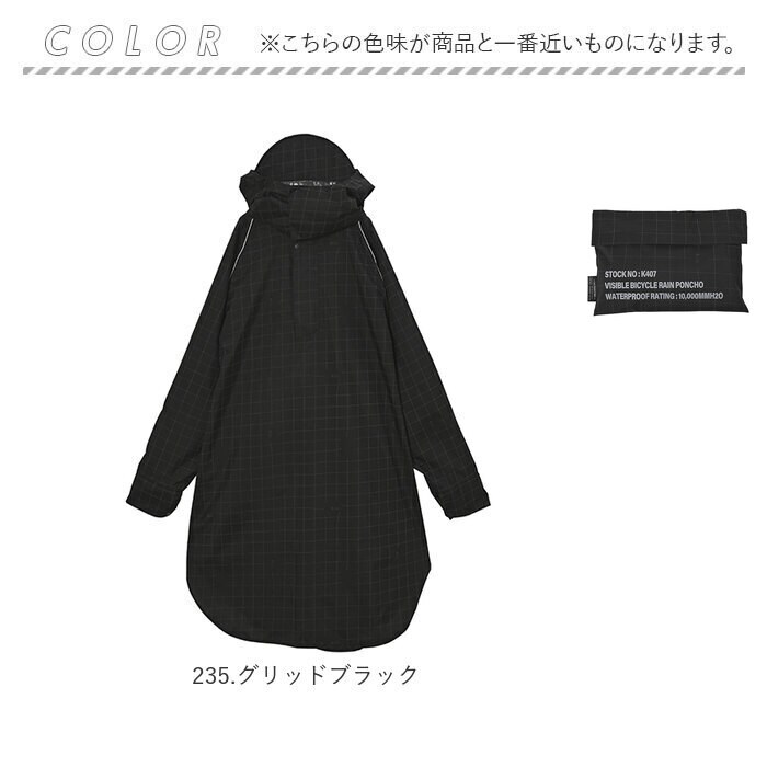 KiU キウ ビジブルバイシクルレインポンチョ【235.グリッドブラック】