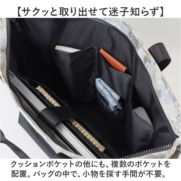 | 商品説明 | 【たっぷり入って頼りになる相棒】嬉しい大容量タイプ!荷物の多いお出かけに重宝する「KiU 600D トートバッグ」。【通勤通学やペアレンツバッグに最適】書類なども入り、必要な荷物がひとまとめ!子育て中のパパ・ママにもおすすめ☆【肩掛けできて移動がラクラク】肩に掛けやすい長さのハンドル。荷物が重くなっても大丈夫。【開閉しやすく安心のファスナー式】ファスナー式の開口部。大きく開いて出し入れしやすく、閉じればこぼれ落ちをガード。【B4もノートPCも持ち運び可能】B4がすっぽり。15インチ程度まで対応のクッションポケットも装備した、容量約21.5L。(※1)耐荷重は約14kgです。底マチはB4の幅よりもやや狭いため、物によっては角が折れるなどの可能性があります。【自立できてフォルムもキープ】マチをしっかりと設け荷物を入れていない状態でも自立。丈夫な600D生地で型崩れしにくい◎【サクッと取り出せて迷子知らず】クッションポケットの他にも、複数のポケットを配置。バッグの中で、小物を探す手間が不要。【フロントにも便利なこだわりを】Dカンと、カラビナや紐を引っ掛けて小物を吊り下げできるデイジーチェーン付き。【ちょっとの雨なら大丈夫】表面にはっ水加工、裏面に防水加工を。汚れや水滴を弾きやすく、お手入れも拭き取るだけ。(※2)完全防水ではありません。底材の表面はPUコーティング済みです。【お揃いOK☆ユニセックスデザイン】シンプルな無地タイプや、個性が光るデザインをラインナップ!お揃いやシェアも。【KiU-キウ】・「どんな天気でもその場を楽しむ」をモットーに、大人の外遊びを応援するブランド。【ポケット仕様】内側:面ファスナーベルト式クッションポケット×2(ベルトは1つのみ)、オープンポケット×3、メッシュポケット×1前面:ファスナーポケット×1背面:オープンポケット×1 |