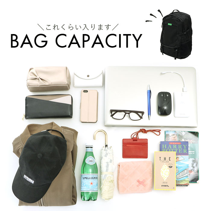 | 素材 | [表地]ナイロン100%(PUコーティング) [裏地・メッシュ部分]ポリエステル100% [底生地]ポリエステル100%(PUコーティング) |