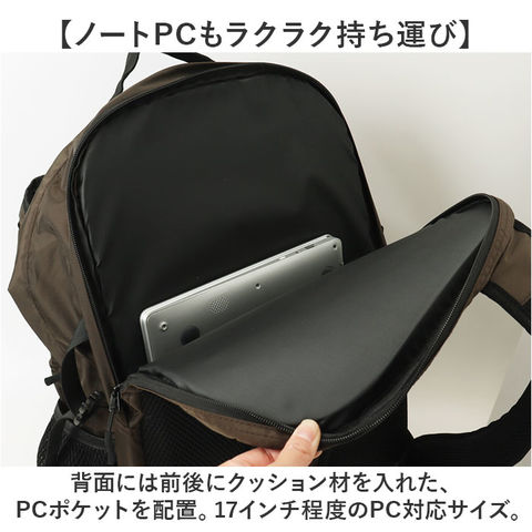 | 商品説明 | 【大容量&多機能◎頼れる相棒】しっかり入って機能性も抜群!色んなシーンで活躍する「KiU LC バックパック」。【1つあればいつでも安心して外出】容量約37Lのバックパック。通勤・通学、旅行や登山、アウトドア、防災用としても重宝◎(※1)耐荷重は約25kgです。【ガバっと開くダブルファスナー】左右どちらからもオープン。中身を確認しやすく、出し入れスムーズ。【ざっくり入るメインスペース】メインルームは広い収納スペースを確保。深さもあり、着替えなどもすっぽり。【ノートPCもラクラク持ち運び】背面には前後にクッション材を入れた、PCポケットを配置。17インチ程度のPC対応サイズ。【サクッと取り出せて迷子知らず】小物を整頓できる複数のポケットやDカンも装備!細々した物も、探す手間が不要。【ちょっとの雨なら大丈夫】表面にはっ水加工、裏面に防水効果を高めるPUコーティング加工を。お手入れも拭き取るだけ。(※2)完全防水ではありません。底材表面にも、PUコーティングを施しております。【負担をかけず背負い心地快適】体にフィットする形状のショルダー。背面とショルダー共に、クッション性のあるメッシュ仕様。(※3)クッション材は全て、程よく硬さがあります。【アクティブに動くシーンでも安心】ズリ落ちを防ぐチェストベルト。ワンタッチで装着でき、位置は調整可能。【荷物の量に合わせて横マチを調節】両サイドに、フィット感を調節できるバックルベルト付き。フォルムもキープ。(※4)フロント下部にもバックルベルト付きです。【お揃いOK☆ユニセックスデザイン】カジュアルスタイルに馴染むデザインに、オリジナルネームがワンポイント。お揃いやシェアも!【KiU-キウ】・「どんな天気でもその場を楽しむ」をモットーに、大人の外遊びを応援するブランド。 |