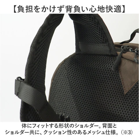 | 注意点 | 【ポケット仕様】メインルーム内側:ファスナー式メッシュポケット×1前面:ファスナーポケット×2、縦ファスナーポケット×1サイド:メッシュポケット×2背面:ダブルファスナー式PCポケット×1年月の経過や空気中の湿度や紫外線、熱や汚れ等により、劣化などが生じる場合があります。長時間日光にあたったり、摩擦、水漏れなどによる色落ちや色移りすることがあります。お取り扱いの際は、商品やパッケージなどに記載されている品質表示、アテンションタグ、ご使用上の注意事項などを必ずご確認下さい。本来の目的以外にはご使用にならないで下さい。カメラやモニターの性質により、画像と実物の色の違いがある場合がございますのでご理解願います。 |