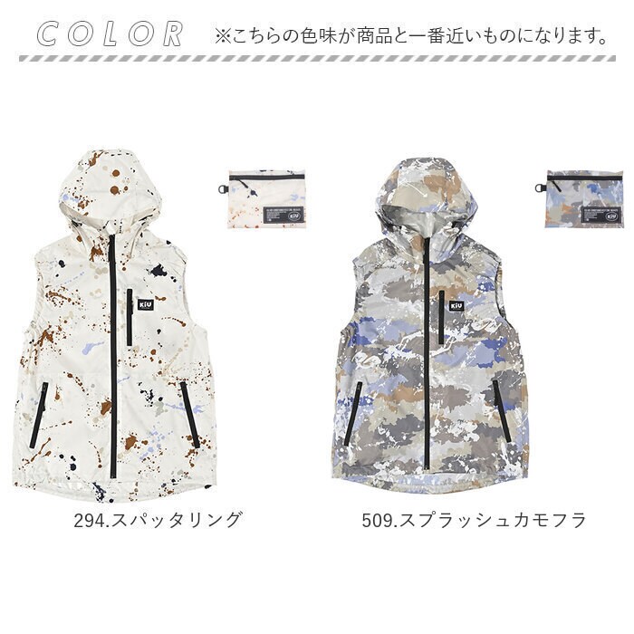 | 注意点 | 【KiU-キウ】・「どんな天気でもその場を楽しむ」をモットーに、大人の外遊びを応援するブランド。手洗い 可 ドライクリーニング 不可乾燥機 不可ベストのみの販売のため、ファン&バッテリーはご自身で用意してください。長時間日光にあたったり、摩擦、水漏れなどによる色落ちや色移りすることがあります。お取り扱いの際は、商品やパッケージなどに記載されている品質表示、アテンションタグ、ご使用上の注意事項などを必ずご確認下さい。本来の目的以外にはご使用にならないで下さい。カメラやモニターの性質により、画像と実物の色の違いがある場合がございますのでご理解願います。 |