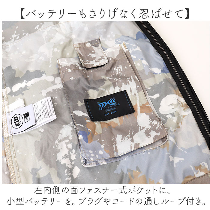 | 商品説明 | 【炎天下の屋外での熱中症対策に!】体を冷やして暑さに負けない◎KiU 空調服 エアコンディションドベスト ユニセックス。【外遊びをより楽しく快適に♪】腰部分2か所に、別売りのファンを取り付け。風を送ることで、汗を気化して体ひんやり。(※1)ウェアのみの販売のため、ファン&バッテリーはご自身で用意してください。【空気排出スペースを確保】襟部分のスナップボタン付き調整紐を留め、首の後ろにスペースを。より多くの空気を排出。【首元を締め付けずノンストレス】首元両サイド、背面のドローコードをキュッと絞って、首元を調節可能。【程よい伸縮性で肩の動きを妨げない】ちょこっと伸縮するゴムをプラス。幅も広めに設け、アクティブに動けるのがポイント。【お好みのシルエットに調整も可能】裾両サイドにもドローコードを装備。シルエットを微調整できるつくり。【小物収納に便利なポケット付き】左右&左胸元にファスナーポケットを配置。スマホやエチケットアイテムなどをIN。【バッテリーもさりげなく忍ばせて】左内側の面ファスナー式ポケットに、小型バッテリーを。プラグやコードの通しループ付き。【突然の雨でも慌てず対応】水滴を弾くはっ水・防水加工を施した生地を使用。お天気の急変にもしっかり対応。(※2)表:はっ水加工/裏:防水加工。完全防水ではありません。はっ水効果は使用頻度により低下していきます。【日差しからも守れて万能】UVカット率90%以上!屋外作業や夏のキャンプ、フェス、アウトドアシーンに最適。【ファンなしのベストとしても着用】ファン設置穴は、スナップボタンで塞ぐことが可能。ファンなしで、通常のベスト使いもOK。【コンパクトに持ち歩ける収納袋】サッと収納できるファスナー式の収納袋が付属。バッグなどに取り付けできるDカン付き。【お揃いOK☆ユニセックスデザイン】シンプルな無地タイプから柄物まで。どなたでも着用しやすいデザインをラインナップ。 |