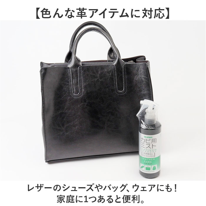 | 商品説明 | 【大切な革製品のカビ除去、抑制に】お手持ちの革製品を、カビから守る!「レザーキュア カビ用ミストプラチナ」が新登場。【カビをすっきり落とす専用ミスト】レザーキュアに含まれる成分が、菌の表面に吸着。革製品に生えたカビを除去!【拭き取るだけで簡単お手入れ】カビを見つけたら本品を布に染み込ませ、拭き取るだけ。いつでも手軽に使えるのが嬉しい!【カビの再発防止にも効果的】直接スプレーすることで、抗菌剤が皮革に浸透。カビの育成を抑制。【安全面にも配慮しているから安心】食品や化粧品で認可されている抗菌剤とプラチナを配合した、日本製品◎【優しいグレープフルーツの香り】気になるニオイもフレッシュ☆ふんわり心地よい香りが広がり、お手入れ中も快適。【色んな革アイテムに対応】レザーのシューズやバッグ、ウェアにも!家庭に1つあると便利。 |