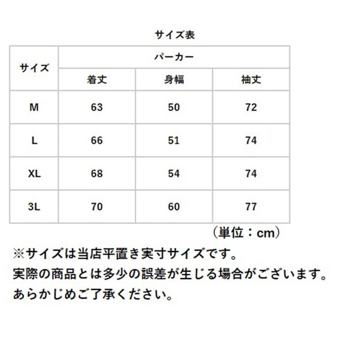 | サイズ | [ユニセックス] ・Mサイズ(適応身長/約160cm~約170cm) ・Lサイズ(適応身長/約170cm~約180cm) ・XLサイズ(適応身長/約175cm~約185cm) ・3Lサイズ(適応身長/約175cm~約185cm) ※サイズについて詳細は、商品画像の中にあるサイズ表をご覧くださいませ。 |