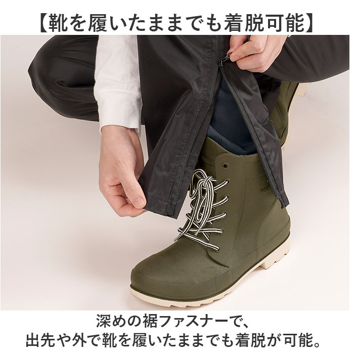 | 商品説明 | 【軽量でタフな素材を採用】雨の日のお出かけはもちろん、作業着としても使える軽量前開きレインパンツ。【大雨の日も安心】耐水圧15,000mmと大雨の日もしっかり雨からカバーできる◎【業界初の軽量生地】レイングッズ業界初の軽量PVC素材を採用。レインコート類特有の重さを無くし軽量化を実現【作業着としても使える】軽くて動きやすいので雨の日はもちろん、作業着や仕事着としても活躍。【着脱しやすい前開き】前開き仕様で着脱がしやすい作り。濡れても脱ぎやすいのも嬉しいポイント。【靴を履いたままでも着脱可能】深めの裾ファスナーで、出先や外で靴を履いたままでも着脱が可能。【べたつかないメッシュ地】裏地には膝下までメッシュ生地を使用し、素肌に触れても生地が貼り付かずべたつかない♪【シーン問わず使える】様々なシーンで使える無地のブラックカラー。通勤通学にも対応したシンプルさもGOOD。 |