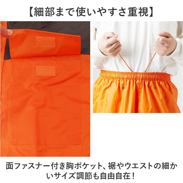 | 商品説明 | 【雨天時の作業が安全・快適に!】重さを感じさせない着心地「DOQMENT アーマーライトレインスーツ」が登場。【驚くほどの軽量感】レイングッズ業界初の軽量PVC素材を採用。レインコート類特有の重さを無くし軽量化を実現!【高い防水性と防風性】・15,000mmの生地耐水圧、ドローコードやスナップボタン、ファスナーで雨風をしっかりブロック【動きを妨げないタフ設計】肩とヒザにはオックス生地を使用、作業時の摩耗や引き裂きに強い安心感をプラス。【ムレにくく快適な着心地】内側メッシュでベタつきを防止、長時間の着用でもさらりと快適な状態をキープ。【ヘルメット対応の安心フード】高さ調節OKで透明ツバ付き、後ろの面ファスナーでしっかりフィットする安心設計。【夜間の安全もサポート】背面の反射材がピカッと光るので、暗い場所での作業や移動にも視認性をしっかり確保。【細部まで使いやすさ重視】面ファスナー付き胸ポケット、裾やウエストの細かいサイズ調節も自由自在!【ユニセックスで着用OK!】シンプルなデザイン。屋外作業はもちろんアウトドアや通勤、通学にも使いやすい一着。 |