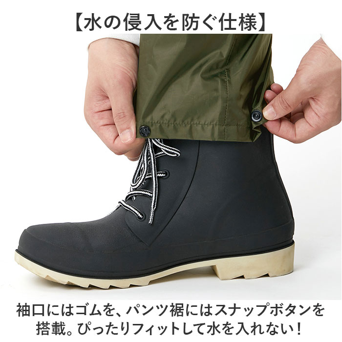 | 商品説明 | 【強くて軽いから、動きやすい!】ヘルメットの上から被れるから安心&安全◎「DOQMENT ライトシールド レインスーツ」が登場。【しっかりガードする上下セット仕様】ジャケットとズボンの上下セットで、雨から全身をしっかりガード!強い雨にも負けない作り。【40%の軽量化を実現】従来のPVC素材よりも40%軽いから、動きやすい。長時間着用しても疲れにくいのがポイント。【ヘルメット対応の大きめフード】ヘルメットの上からしっかり被れるフードを採用。作業現場や自転車シーンも問題なし。※ヘルメットの形状によっては、フードが被れない可能性があります。【耐水圧15,000mmの生地】信頼の防水性で、強い雨や長時間の使用も安心。確かな品質で、雨の日も快適に過ごせる。【顔周りのフィット感を調節◎】フードには、サイドと後頭部を調節できるコードと面ファスナーを搭載。【どんな体勢もお任せの3Dカット】肩や腕周りの動きを邪魔しない、3Dカッティングを採用。ゴムウエストで締め付け感なし。【水の侵入を防ぐ仕様】袖口にはゴムを、パンツ裾にはスナップボタンを搭載。ぴったりフィットして水を入れない!【夜間も安心のリフレクター】ジャケットの背面にはリフレクターを配置。夜間や悪天の日にも安心。【ユニセックスで着られる】サイズ展開があるので、女性も男性も着用OK。シンプルなので、幅広いシーンに対応。【お仕事も通勤通学も、休日も】現場仕事はもちろん、通勤通学、アウトドアや釣りなどのレジャーにも大活躍。【上下別々に使うのもオススメ】ジャケットだけ着て小雨をしのいだり、ズボンだけ穿いて洗車をしたり…マルチに使える。 |