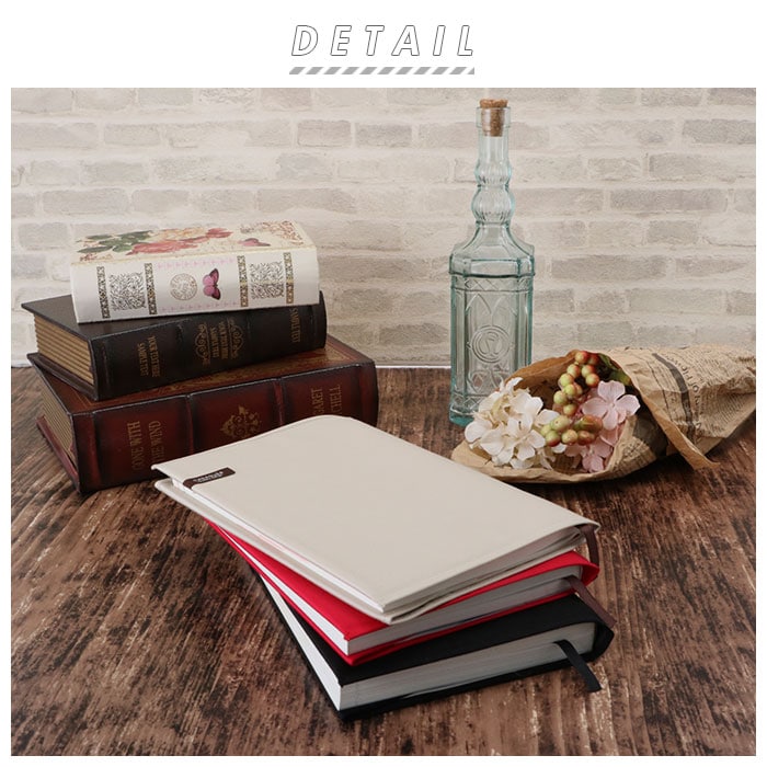 | 注意点 | 表紙の厚みによっては収納できない場合があります。洗濯はできません。摩擦や水に濡れた場合、色落ちすることがありますので、取り扱いにはお気をつけください。カメラやモニターの性質により、画像と実物の色の違いがある場合がございますのでご理解願います。 |