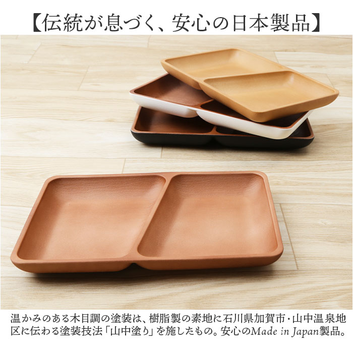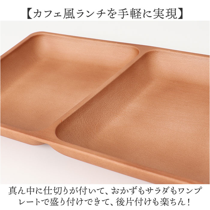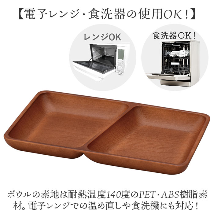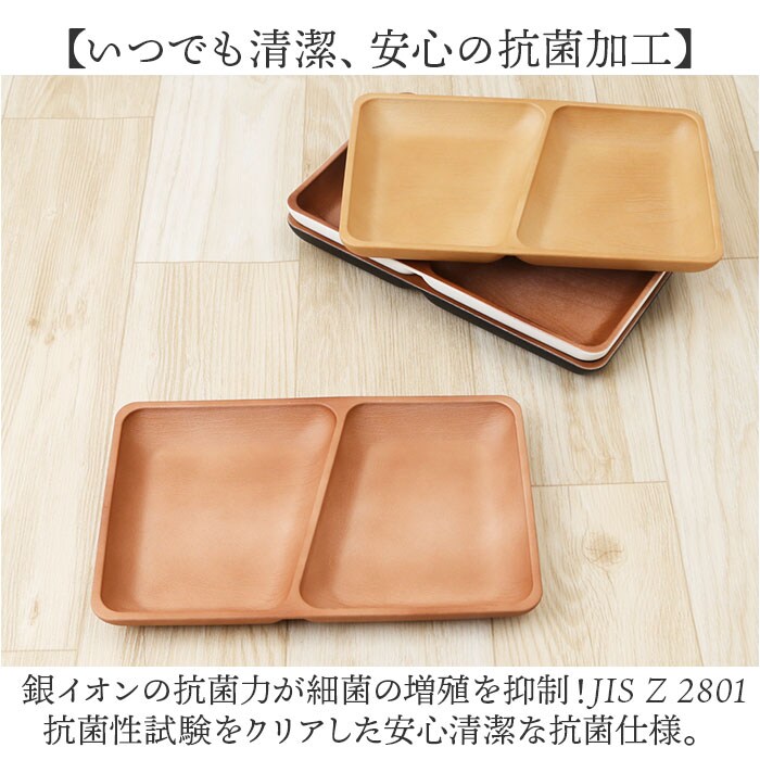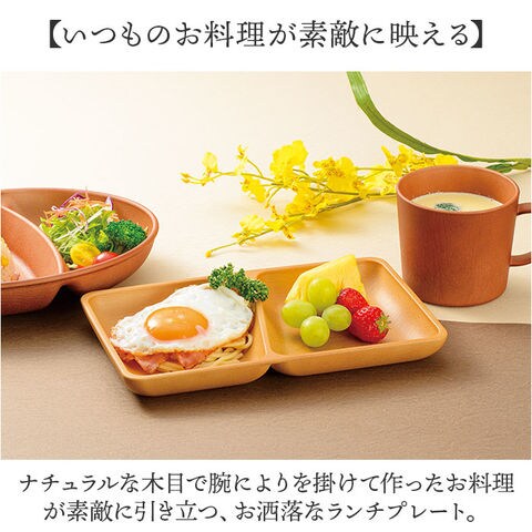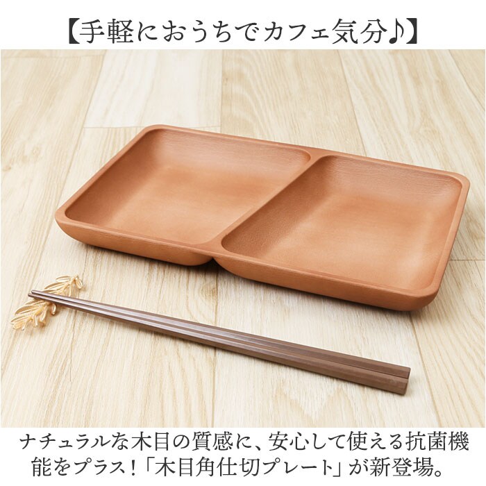 | 商品説明 | 【手軽におうちでカフェ気分♪】ナチュラルな木目の質感に、安心して使える抗菌機能をプラス!「木目角仕切プレート」が新登場。【いつものお料理が素敵に映える】ナチュラルな木目で腕によりを掛けて作ったお料理が素敵に引き立つ、お洒落なランチプレート。【カフェ風ランチを手軽に実現】真ん中に仕切りが付いて、おかずもサラダもワンプレートで盛り付けできて、後片付けも楽ちん!【スープやソースが混ざらない♪】2つの仕切りには深さがあり、カレーやスープハンバーグなど汁気のあるおかずもキレイに盛れる♪【いつでも清潔、安心の抗菌加工】銀イオンの抗菌力が細菌の増殖を抑制!JIS Z 2801抗菌性試験をクリアした安心清潔な抗菌仕様。【電子レンジ・食洗器の使用OK!】ボウルの素地は耐熱温度140度のPET・ABS樹脂素材。電子レンジでの温め直しや食洗機にも対応!【軽くて、丈夫で、割れにくい。】ふわっと軽く持ち運べて、落としても割れにくい丈夫さも魅力。キャンプやアウトドアでも大活躍。【スタッキングで省スペース】同じサイズのプレートを積み重ねてすっきりと収納可能。食器棚でも場所を取らずに省スペース♪【伝統が息づく、安心の日本製品】温かみのある木目調の塗装は、樹脂製の素地に石川県加賀市・山中温泉地区に伝わる塗装技法「山中塗り」を施したもの。安心のMade in Japan製品。【About Natule ーナチュール-】いつでもお家でカフェ気分が味わえる、ナチュラルで使いやすい木目風のテーブルウェア。季節の食材を盛り付けて、素敵なランチが演出できるのはもちろん、夜ごはんもおやつの時間も大活躍。 |