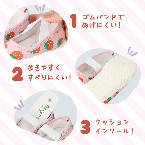 | 商品説明 | かわいらしい柄やモチーフが目を引く上履き(13cm~18cm)が発売。長持ちするのが嬉しい丈夫なキャンバス生地を採用。ゴムバンドが足にフィットし脱げにくくて安心。中敷きはクッション性があり、取り外しできるからお手入もラクチン。アウトソールはかわいらしいキャラクターがデザインされた滑り止め加工仕様。屈曲性に優れたアウトソールが歩きやすく、快適な履き心地。 |