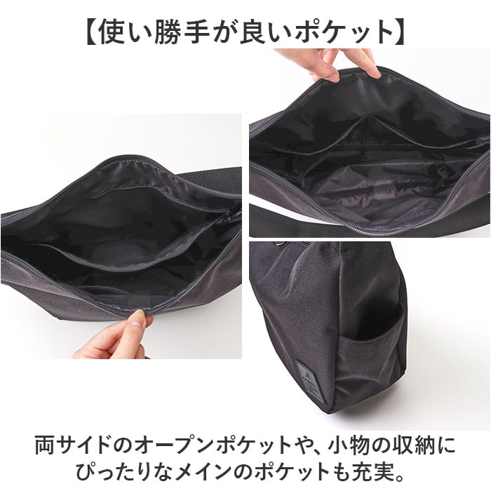 | 商品説明 | 【毎日使いにちょうどいい♪】スタイリッシュなオールブラック仕様☆「KANGOL follow ショルダーバッグ」が登場。【1日の荷物をまるっと収納◎】ペットボトルやお弁当、参考書やタブレットなどをひとまとめに収納できるサイズ感!【使い勝手が良いポケット】両サイドのオープンポケットや、小物の収納にぴったりなメインのポケットも充実。【レザータグで洗練された印象に】ブランドロゴが刻印されたレザータグがポイント。スタイリッシュで高見えするオールブラック♪【持ち歩きしやすい軽量設計】約221gとバッグ本体が軽いから、たくさん荷物を入れても大丈夫!通勤通学、旅行やお出かけに【ダブルファスナーが便利!】メイン収納のファスナーはダブル仕様。左右どちらからも開けられ、荷物が取り出しやすい。【ポケット仕様】メイン:オープンポケット×2、ファスナーポケット×1サイド:オープンポケット×2 |