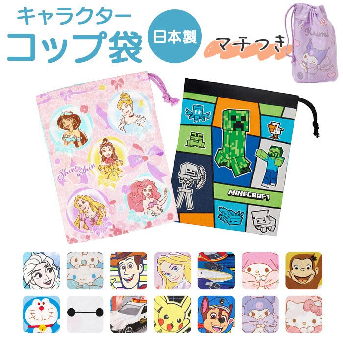 | 商品説明 | 【コップの持ち運びがラクラク】保育園や幼稚園の給食・歯磨き用のコップを収納!キャラクターデザインの「コップ袋」。【キュッと絞って飛び出しをガード】ヒモで口を絞れる巾着タイプ。お子さまも扱いやすく、中身がこぼれ落ちない♪【通気性に優れたコットン製】使用後のコップを入れてもムレにくい◎衛生面も安心の日本製コップ袋。(※)水気をよく拭き取ってから収納してください。【ちょこっと高さのあるコップもOK】程よい縦型フォルム。コップが飛び出さず、すっぽり収まるのが嬉しい!【お菓子や小物の収納にもおすすめ】コップだけでなく細々した物をまとめたり、キャンディなどをINできて便利。使い方は色々☆【人気キャラクターが大集合!】みんなが大好きなキャラクターたち!新生活の準備アイテムにリストアップ☆ |