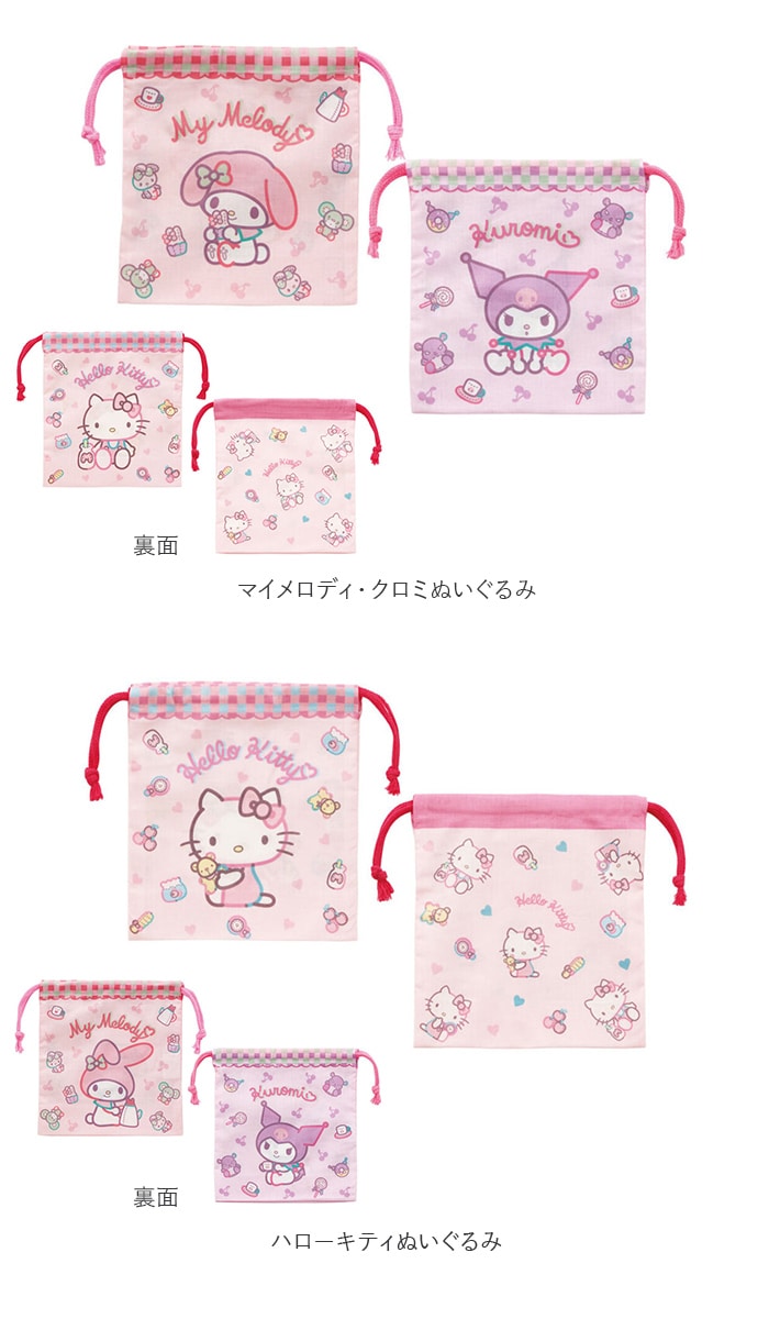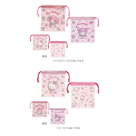 マチ付き巾着 2P KB64WN【マイメロディ・クロミぬいぐるみ】