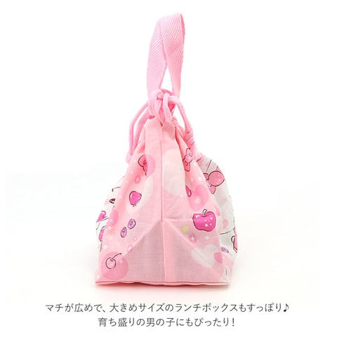 | 注意点 | ランチボックス用の巾着袋です。本来の用途以外のご使用はお避けください。漂白剤は使用しないでください。色物は初め、若干色落ちすることがありますので、白い物と一緒に洗わないでください。カメラやモニターの性質により、画像と実物の色の違いがある場合がございますのでご理解願います。 |
