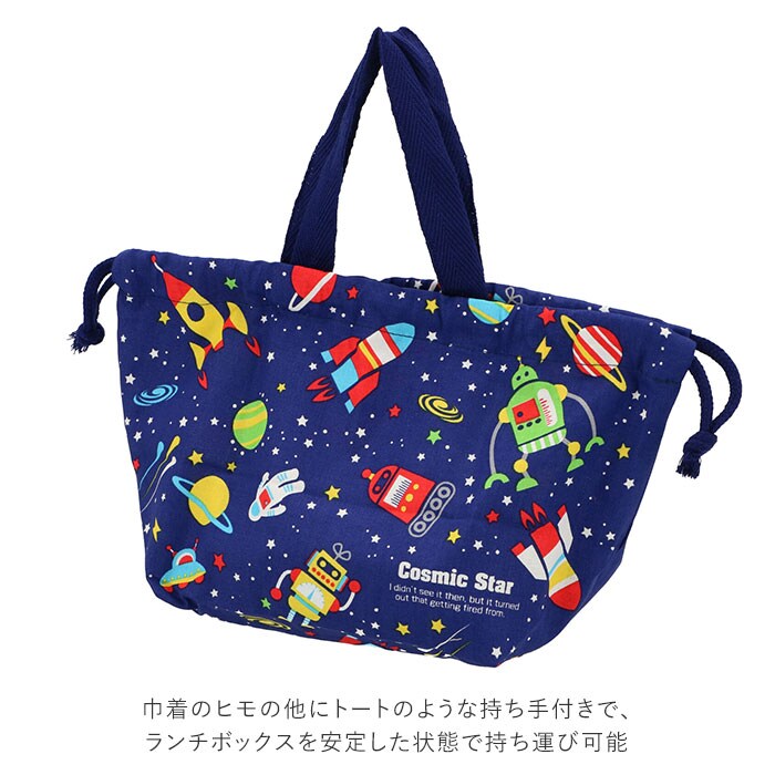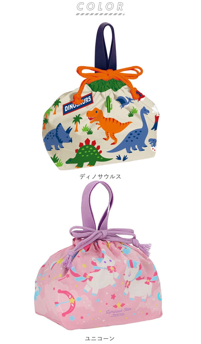 | 商品説明 | 男の子にも女の子にも人気の可愛い絵柄をラインナップ!口がヒモでキュッと絞れるランチ巾着。マチが広めで、大き目サイズのランチボックスもIN出来る♪育ち盛りの男の子にもぴったり!ヒモで口を絞れる巾着タイプ!お箸ケースやお絞りを入れても、小物がバラバラにならずに安心。巾着のヒモの他にトートのような持ち手付きで、ランチボックスを安定した状態で持ち運び可能。お弁当箱の中のおかずが片寄らず、腕によりを掛けたデコ弁もくずれない。ユニコーンやディノサウルスなど、バラエティに富んだ絵柄で、ランチボックスだけでなく、小物入れやミニトートとしても活用できる♪肌にやさしい綿100%素材。安心の日本製。 |