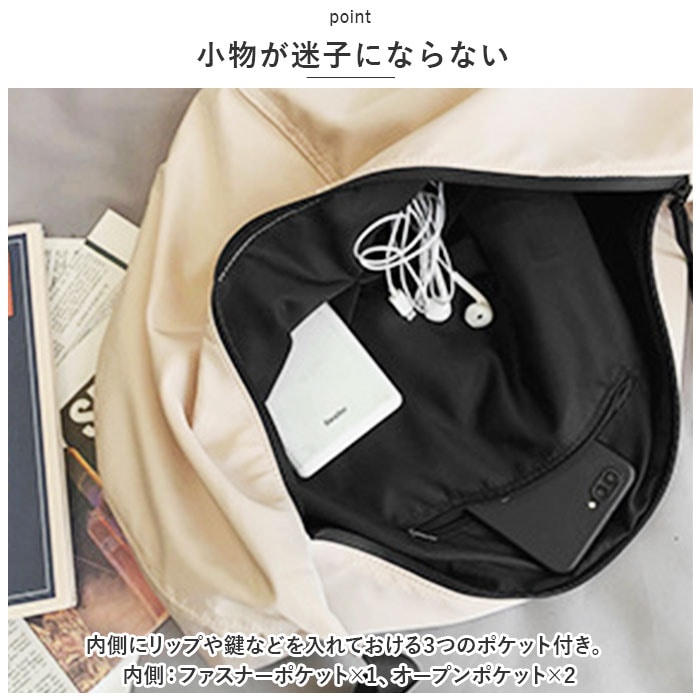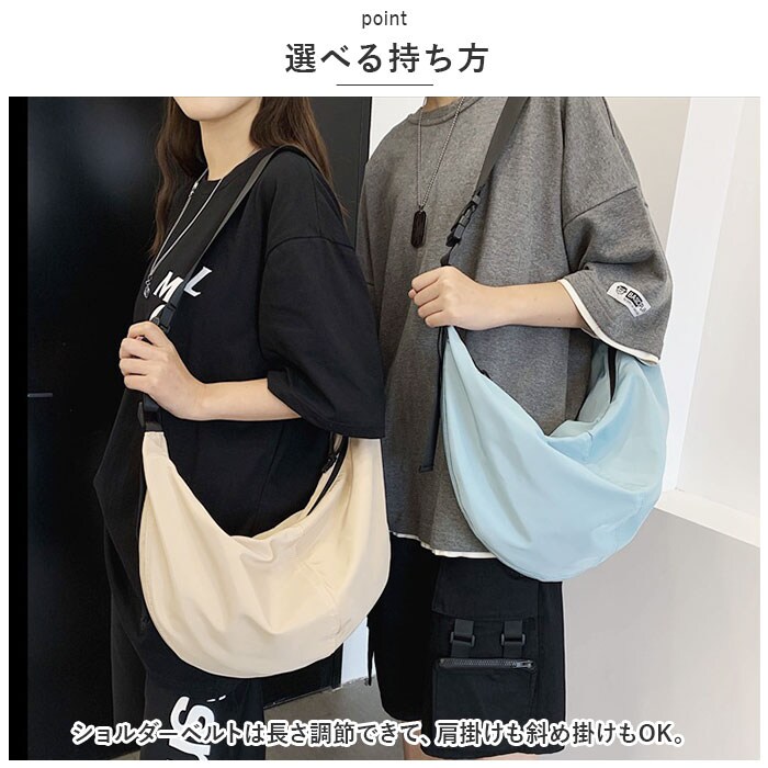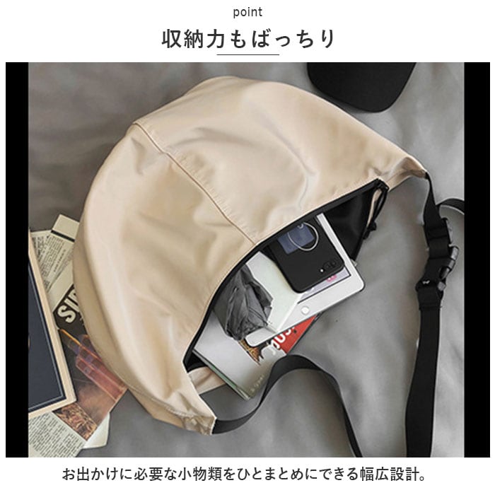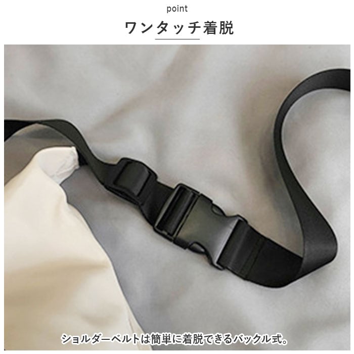 | 商品説明 | サッと持ち出せる!カジュアルスタイルにぴったりなショルダーバッグが新登場。【とっても軽くて使いやすい!】肩に負担がかかりにくい軽量なつくり。柔らかな生地感で、ボディラインに沿って心地よくフィット。【ファスナー開口】中身がこぼれ落ちることなく、プライバシーを確保。【収納力もばっちり】お出かけに必要な小物類をひとまとめにできる幅広設計。【小物が迷子にならない】内側にリップや鍵などを入れておける3つのポケット付き。【ワンタッチ着脱】ショルダーベルトは簡単に着脱できるバックル式。【選べる持ち方】ショルダーベルトは長さ調節できて、肩掛けも斜め掛けもOK。【ユニセックスデザイン】シンプルなデザイン&落ち着きのあるカラー展開。家族で兼用もできちゃう!【様々なシーンで】両手が空くので移動がラクラク。レジャーや旅行、通学用、マザーズバッグとしても活躍。【ポケット仕様】内側:ファスナーポケット×1、オープンポケット×2 |
