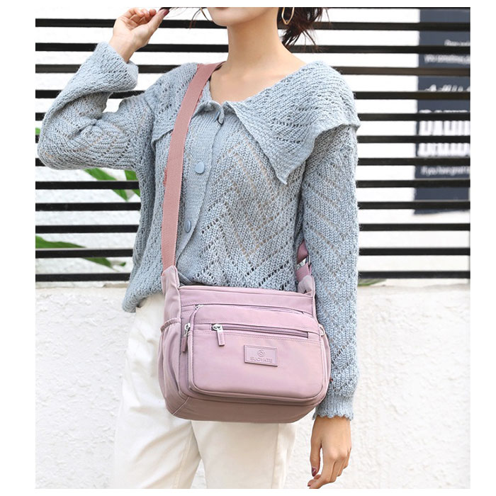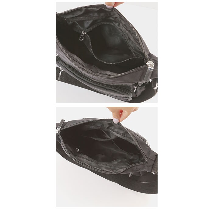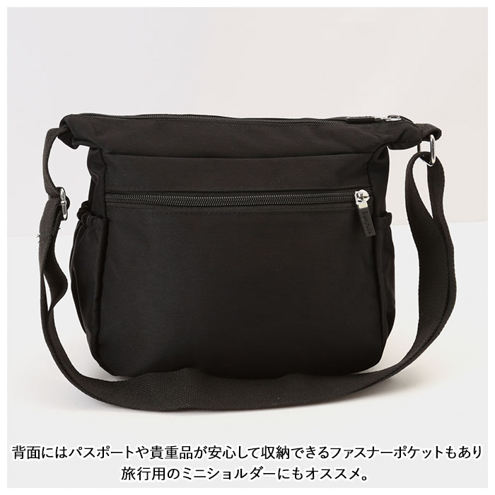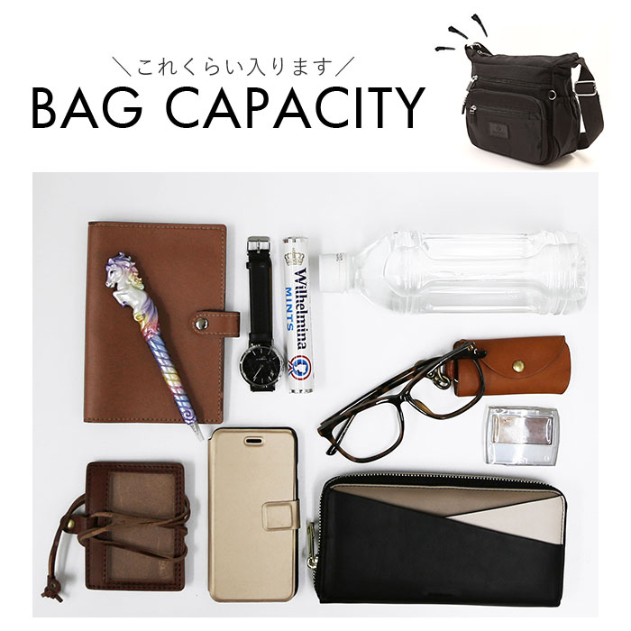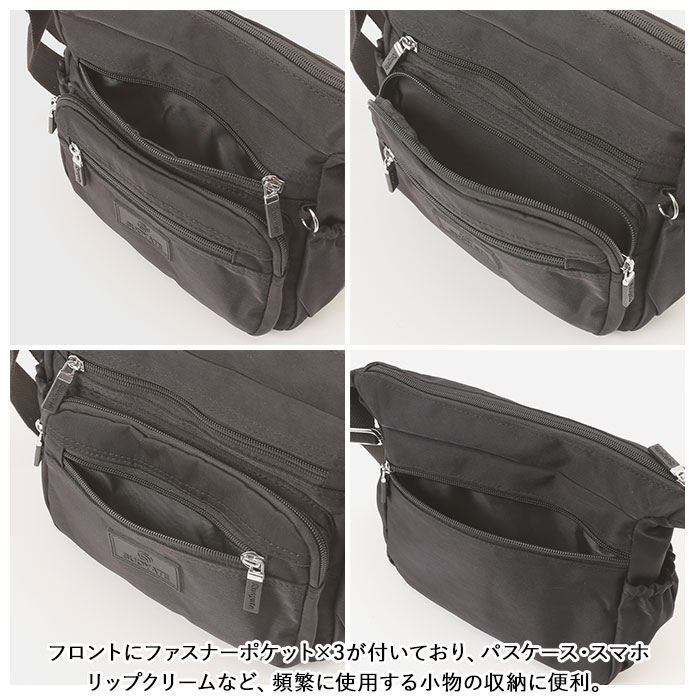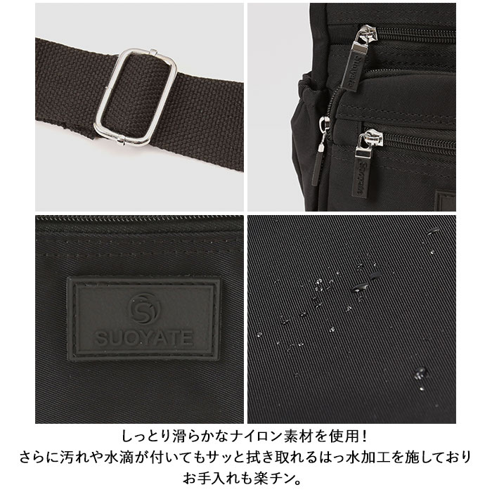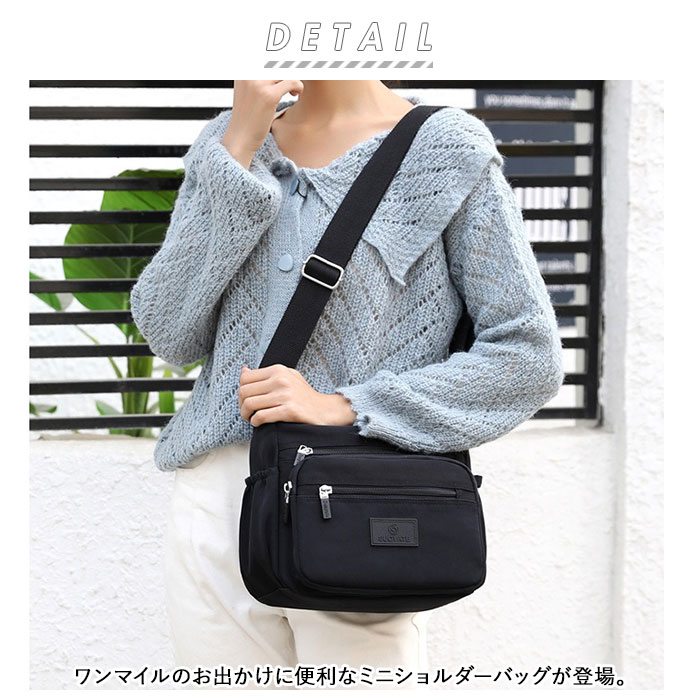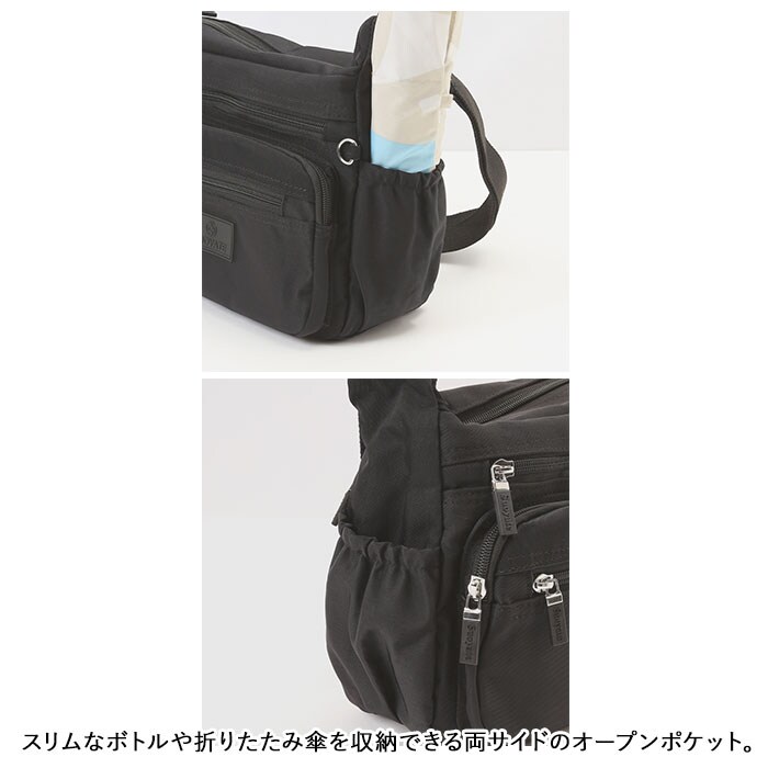 | 商品説明 | ワンマイルのお出かけに便利なミニショルダーバッグが登場。メインルームは二つ折り財布など、最小限の小物がコンパクトにまとまる。小物が多くても仕分けて入れられるオープンポケット×2とファスナーポケット×1を装備。フロントにファスナーポケット×3が付いており、パスケース・スマホ・リップクリームなど、頻繁に使用する小物の収納に便利。スリムなボトルや折りたたみ傘を収納できる両サイドのオープンポケット。さらに背面には、パスポートや貴重品が安心して収納できるファスナーポケットもあり旅行用のミニショルダーにもオススメ。しっとり滑らかなナイロン素材を使用!さらに汚れや水滴が付いてもサッと拭き取れるはっ水加工を施しておりお手入れも楽チン。 |