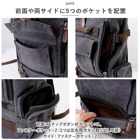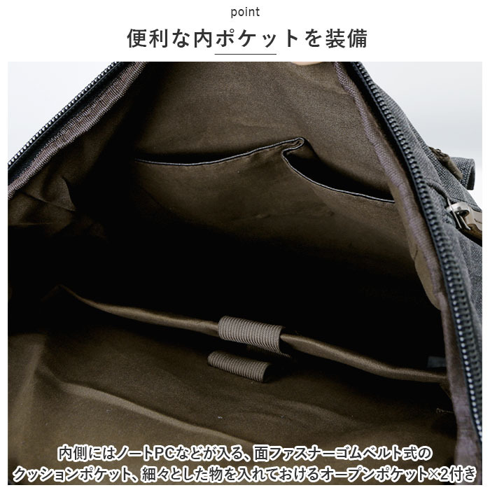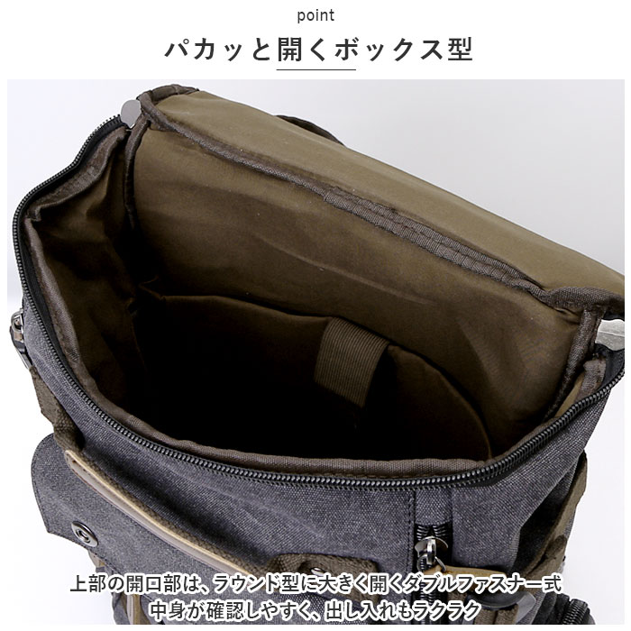 | 商品説明 | 旅行やアウトドアなどにもぴったり!大容量タイプのリュックが登場。【パカッと開くボックス型】上部の開口部は、ラウンド型に大きく開くダブルファスナー式。中身が確認しやすく、出し入れもラクラク。【B4サイズ対応でたっぷり入る!】B4サイズのファイルがすっぽり収まる!しっかりと深さがあり、お出かけに必要な小物がひとまとめ◎【スリム設計】大容量ながら、すっきりとしたシルエットで電車やバス移動時にも邪魔になりにくい!【便利な内ポケットを装備】内側にはノートPCなどが入る、面ファスナーゴムベルト式のクッションポケット、細々とした物を入れておけるオープンポケット×2付き。【小物の整理整頓がラクラク】前面や両サイドに5つのポケットを配置。小物を仕分けて、サッと取り出せるのが嬉しい◎【横マチ調節】両サイドに、荷物の量に合わせて調節できるバックルベルト付き。【背負い心地快適】背面とショルダーベルトは程よいクッション性があり、体にかかる負担を軽減。【ポケット仕様】メインルーム:面ファスナーゴムベルト式クッションポケット×1、オープンポケット×2前面:スナップボタン式ポケット×1、ファスナーポケット×2(1つは左右両方から取り出し可能)サイド:ファスナーポケット×2 |
