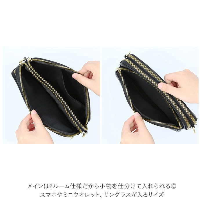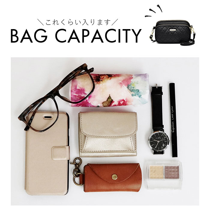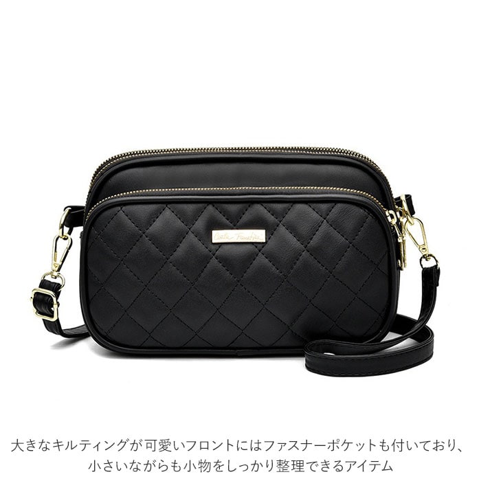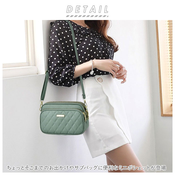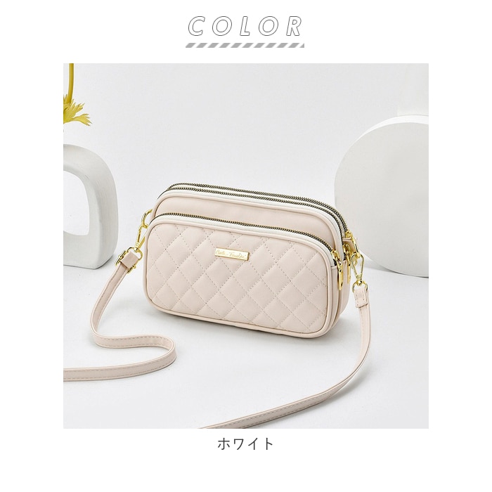 | 商品説明 | ちょっとそこまでのお出かけやサブバッグに便利なミニポシェットが登場。メインは2ルーム仕様だから小物を仕分けて入れられる◎スマホやミニウオレット、サングラスが入るサイズ。背面のメインルームにファスナーポケット装備。大きなキルティングが可愛いフロントにはファスナーポケットも付いており、小さいながらも小物をしっかり整理できるアイテム。ショルダーベルトを外せばクラッチバッグとしても使える2WAYタイプ。 |