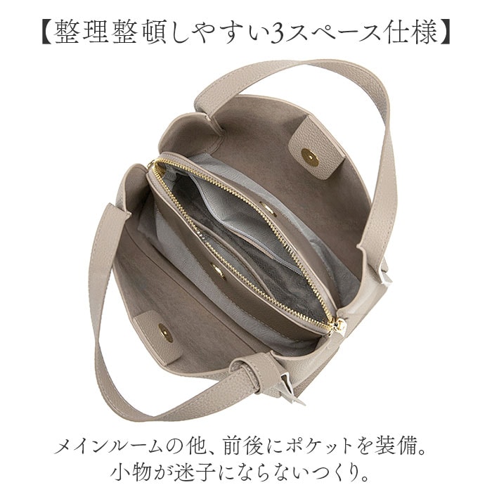 | 商品説明 | 【シンプルかつ上品な大人のバッグ】オン・オフ問わず使えて万能◎高級感のある2way仕様の「ショルダーバッグ」。【落ち着きのある雰囲気を素敵に演出】手触り滑らかなスプリットレザーを使用。スタイリッシュで、キレイめコーデにもマッチ。【お好みに合わせてスタイルチェンジ】手持ちではもちろん!長さ調節可能なベルトを取り付けて、肩掛けや斜め掛けも自在。【キレイなシルエットをキープ】しっかりとしたマチで、型崩れしにくい!荷物を入れていない状態でも自立。【整理整頓しやすい3スペース仕様】メインルームの他、前後にポケットを装備。小物が迷子にならないつくり。【開閉スムーズ、安心のファスナー式】メインはガバっと開いて取り出しやすく、ファスナーを閉じればプライバシーも確保。【マストアイテムをひとまとめ】折り財布やミニポーチなどがすっぽり。細々したものを入れておける内ポケット付き。(※)メインルームの底面は縫い付けられておりません。【マグネットボタンでワンタッチ開閉】力いらずで開閉できる前後ポケット。スマホなど使用頻度の高い小物を収納。【お気に入りを選べるカラー】飽きが来ず、長く愛用できる!落ち着きのあるカラーをラインナップ。【ポケット仕様】メインルーム内側:ファスナーポケット×1、オープンポケット×1メインルー前後:マグネット式ポケット×2 |