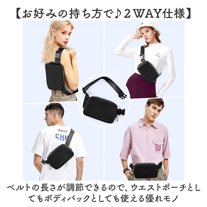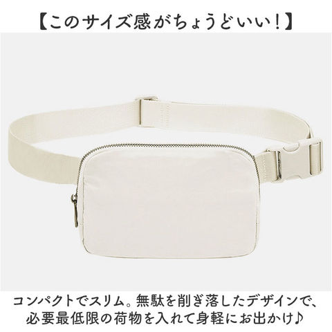 | 商品説明 | 【ジムやラン、ウォーキングに!】ウエストポーチ、ボディバックの2WAY仕様☆「ウエストポーチ ランニングベルト」が登場。【このサイズ感がちょうどいい!】コンパクトでスリム。無駄を削ぎ落したデザインで、必要最低限の荷物を入れて身軽にお出かけ♪【スポーツシーンにオススメ☆】ジムやランニング、ウォーキングなど身体を動かすシーンにぴったり!軽量だから負担を軽減◎【お好みの持ち方で♪2WAY仕様】ベルトの長さが調節できるので、ウエストポーチとしてもボディバックとしても使える優れモノ【バックルつきの幅広ベルトで快適!】ベルトは幅広設計なので、肩に食い込みしにくい。バックルでカチッと簡単に着脱が可能。【中身が飛び出さないファスナー式】メインと背面ポケットにはファスナーを採用。激しい運動もOKの嬉しい作り!【小物を仕分けできるポケットつき】イヤホンや鍵、カードやコインケースなどのゴチャつきがちな小物を収納できるポケットが4つ!【大人も持てるシンプルデザイン】ワンカラーでまとめたシンプルデザインなので、年齢性別を問わずに持てる!【ポケット仕様】背面:ファスナーポケット×1メイン:メッシュオープンポケット×3 |