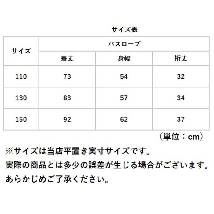| サイズ | [キッズ] ・110cm ・130cm ・150cm ※サイズについて詳細は、商品画像の中にあるサイズ表をご覧くださいませ。 |