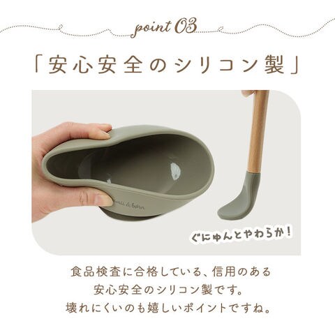 | 素材 | 【シリコンボウル】シリコンゴム 【スプーン】シリコンゴム、天然木 |