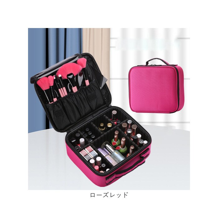 メイクボックス 大容量 仕切り kbcp022【ローズレッド】