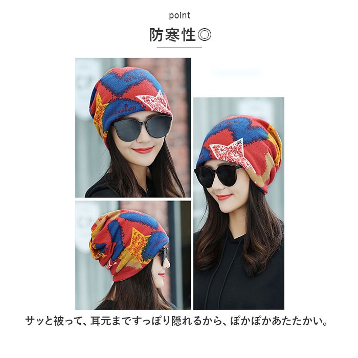 | 商品説明 | レディース ターバンキャップが登場。POPなカラーとレース柄のプリントが可愛いアイテム☆上部はスペースが空いており、広げて使えばポニーテールも崩さず被れるのが嬉しいポイント。使わないときは絞ってある作りだから冷気を通さない◎サッと被って、耳元まですっぽり隠れるから、ぽかぽかあたたかい。色んなコーディネートに合わせやすく、アクセントにもなるおしゃれアイテム。 |