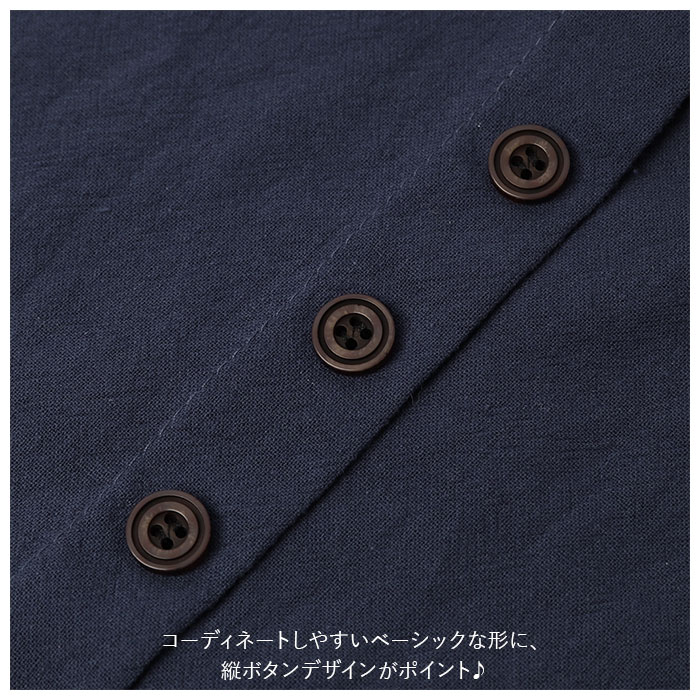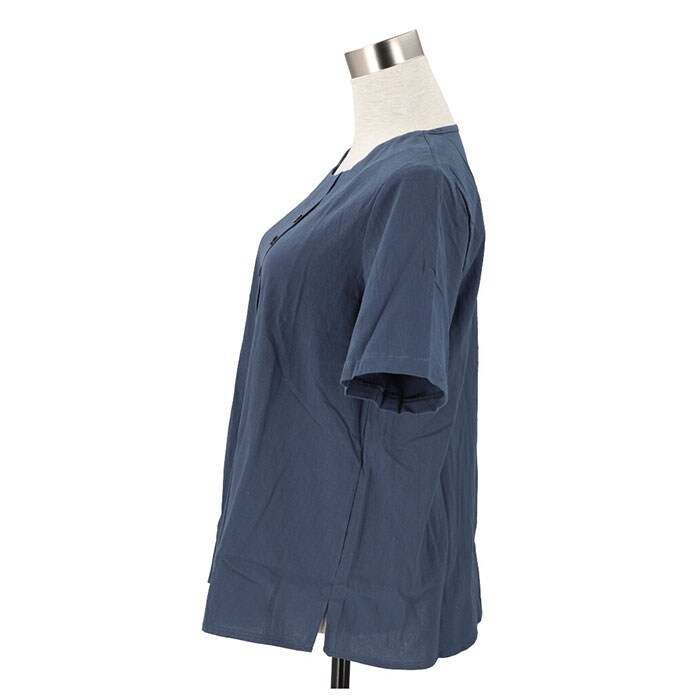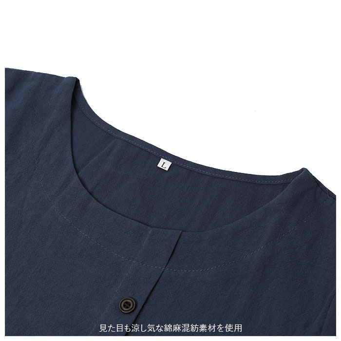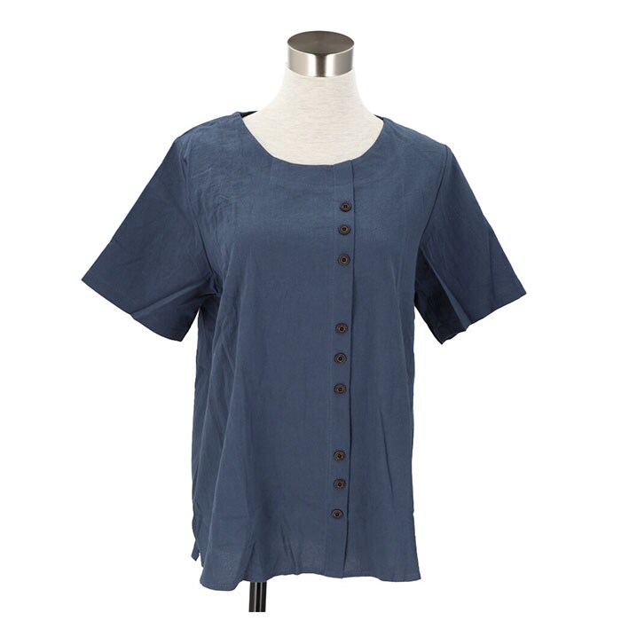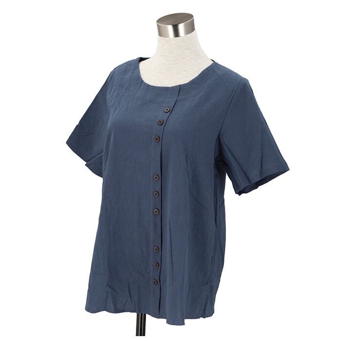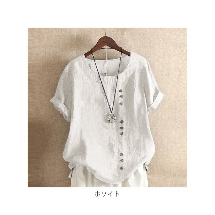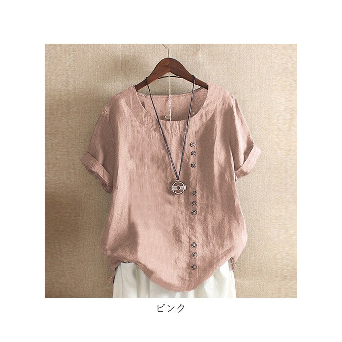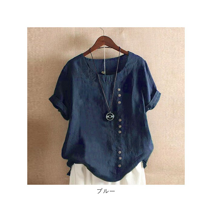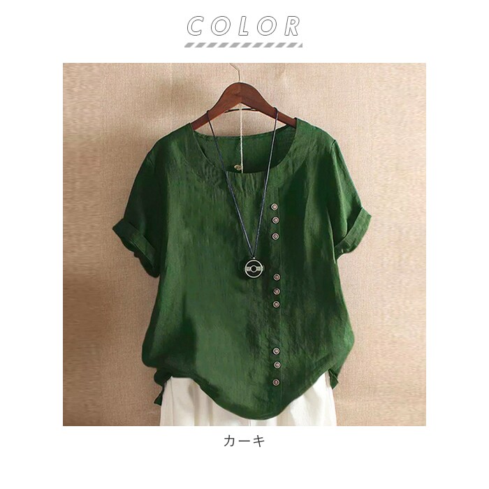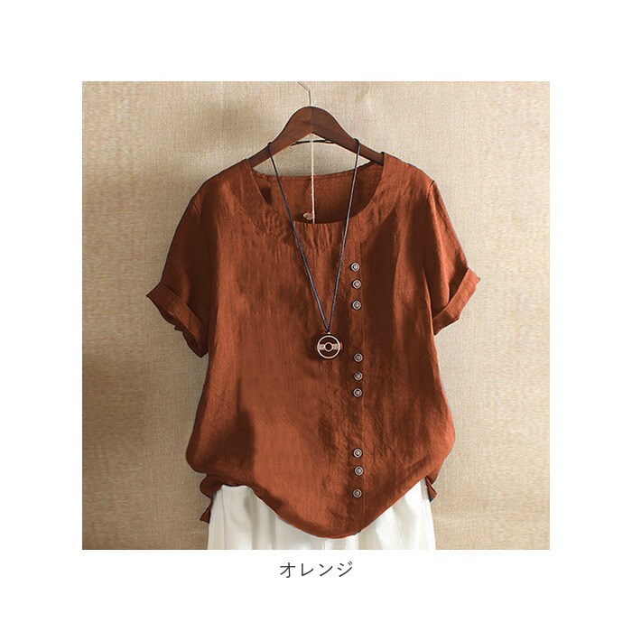 | 商品説明 | 柔らかく肌触りが気持ちいい♪半袖トップス。見た目も涼し気な綿麻混紡素材を使用。サラッと軽い着心地で、春~秋と長いシーズン着回せるのが嬉しい。洗っても乾くのが早いので、お手入れがラクチン。コーディネートしやすいベーシックな形に、縦ボタンデザインがポイント♪(※ボタンは取り外しできません。) |