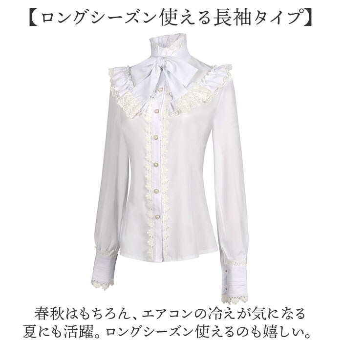 | 商品説明 | クラシカル&エレガントな仕上がりに♪レース×ボウタイ襟がポイントの、ブラウスが登場。【ボウタイリボンでエレガントに♪】ボリューミーなボウタイリボンは取り外し可能。気分に合わせて着方をチョイスできる!【パール×レースでクラシカルな印象】イミテーションパールと贅沢なレース使いでクラシカルに仕上げたブラウス。大人っぽさを演出♪【袖コンシャスで魅せるデザイン性】袖コンシャスでリッチさがUP!ふんわりシルエットの袖で、細見え効果もバツグン。【おしゃれしたい幅広いシーンで活躍】発表会、入学式などのフォーマル、パーティーやイベントなどロリ系で仕上げたい日にも最適。【ロングシーズン使える長袖タイプ】春秋はもちろん、エアコンの冷えが気になる夏にも活躍。ロングシーズン使えるのも嬉しい。 |