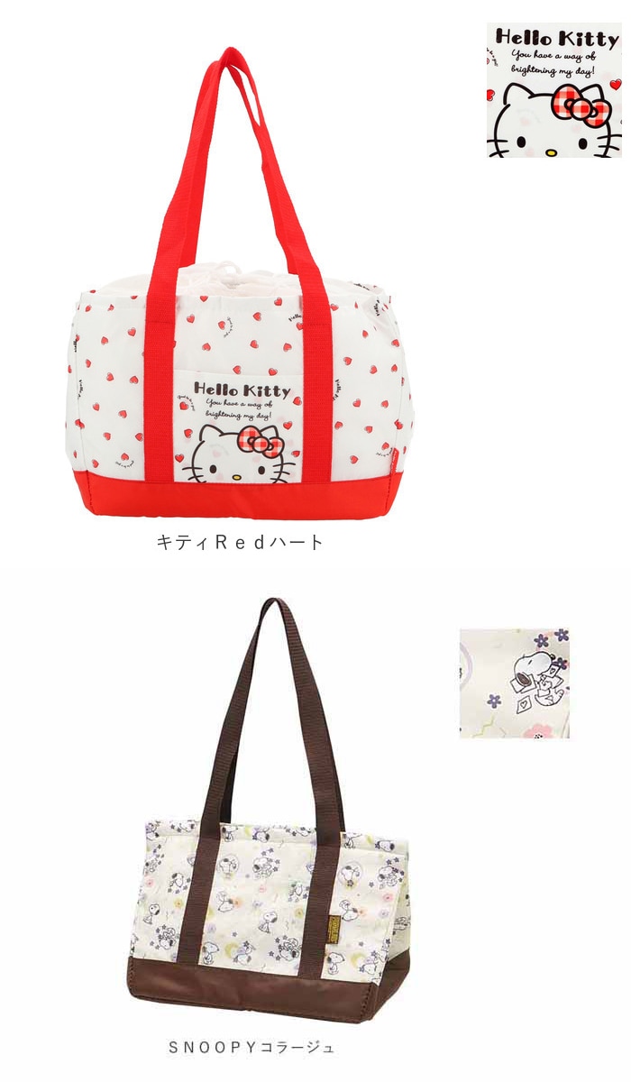 | 商品説明 | マチが広くてたっぷり入る!人気キャラクターの絵柄が可愛い、保温保冷レジかご用バッグ。レジカゴにサッと広げれば、巾着部分がカゴのフチにぴったりフィット!お会計後は紐をしばって取り出すだけで、袋詰めの手間が省けて楽ちん。レジカゴ バッグの開口部は巾着タイプ。口を紐でキュッとしばれば、たっぷりのお買い物したときも食材が飛び出さず、目隠しにもなって便利。週末のまとめ買いにも余裕で対応できる大容量サイズ!大きめの野菜や果物、ペットボトルもしっかり入る。生地の中材には程よく厚みのある発泡ポリエチレンを使用し、保冷効果UP!クッション性もあり、卵や果物などデリケートな食材を運ぶ時も安心。フロントには中身が見えるクリア素材のポケット付き。お買い物予定の食材を書き留めたメモやレシートがちょうど入るサイズ。(※キティRedハートは不透明素材のポケットです。)長めにデザインされた持ち手ハンドルで、肩に通して持ちやすい♪重くなった荷物もラクラク持ち運び。バッグを使用しない時には、左右のマチをスナップボタンで留めて、折り目の入った底板を二つにたためばとってもコンパクトに! |