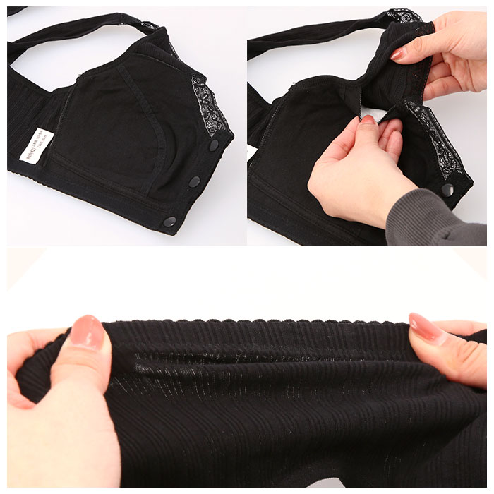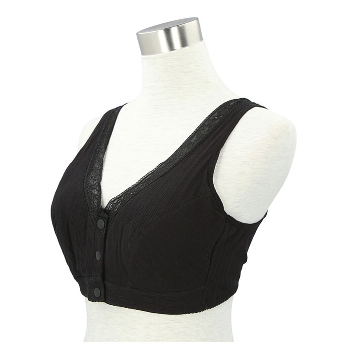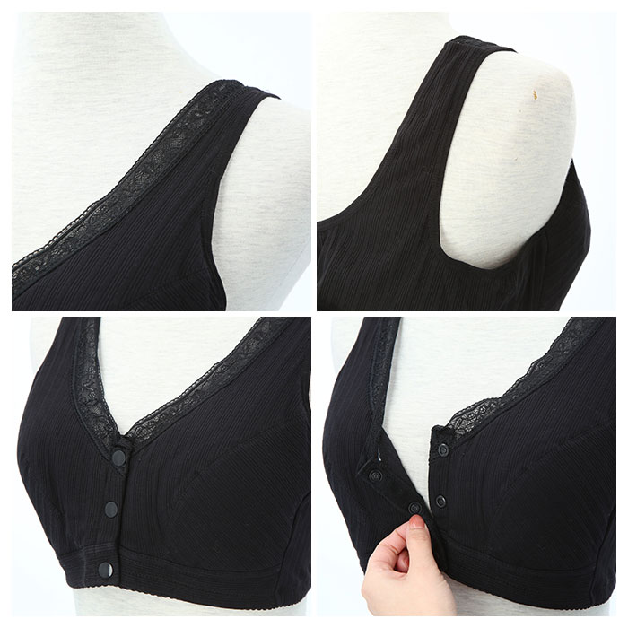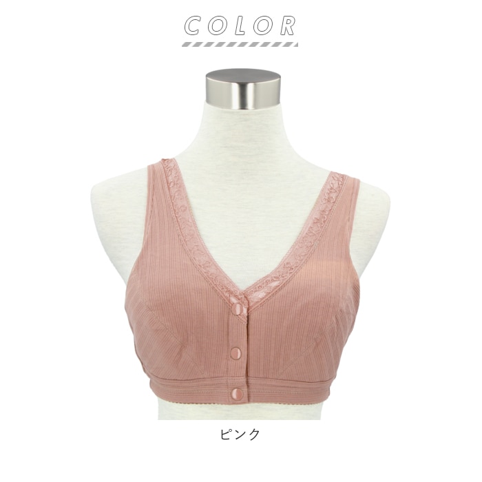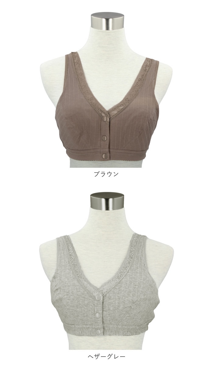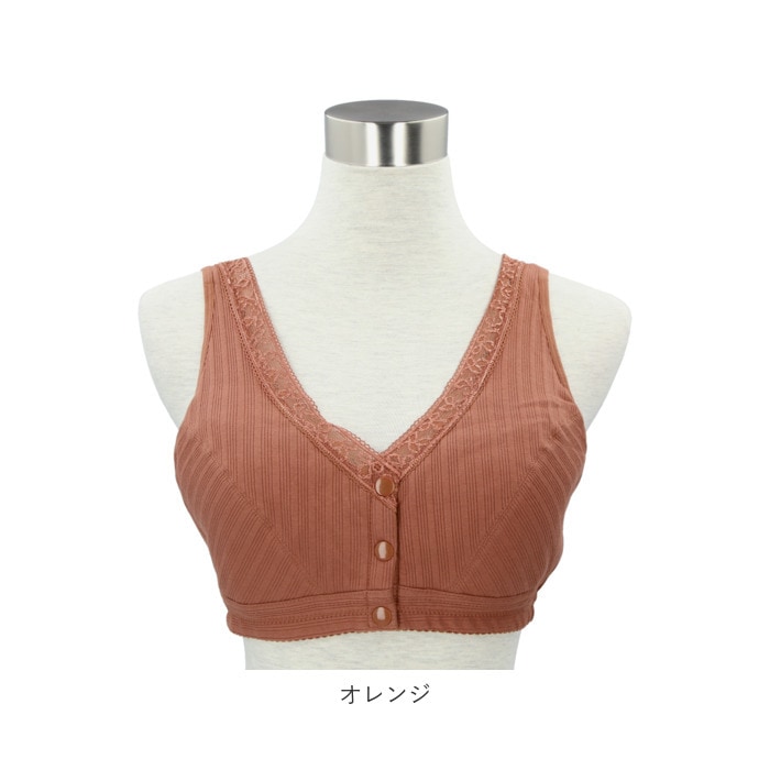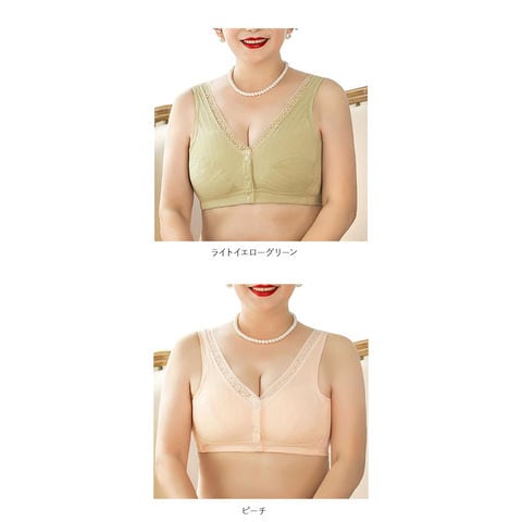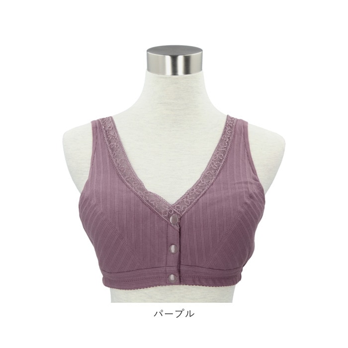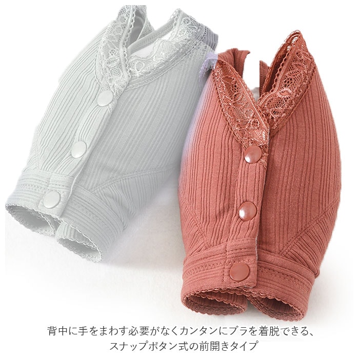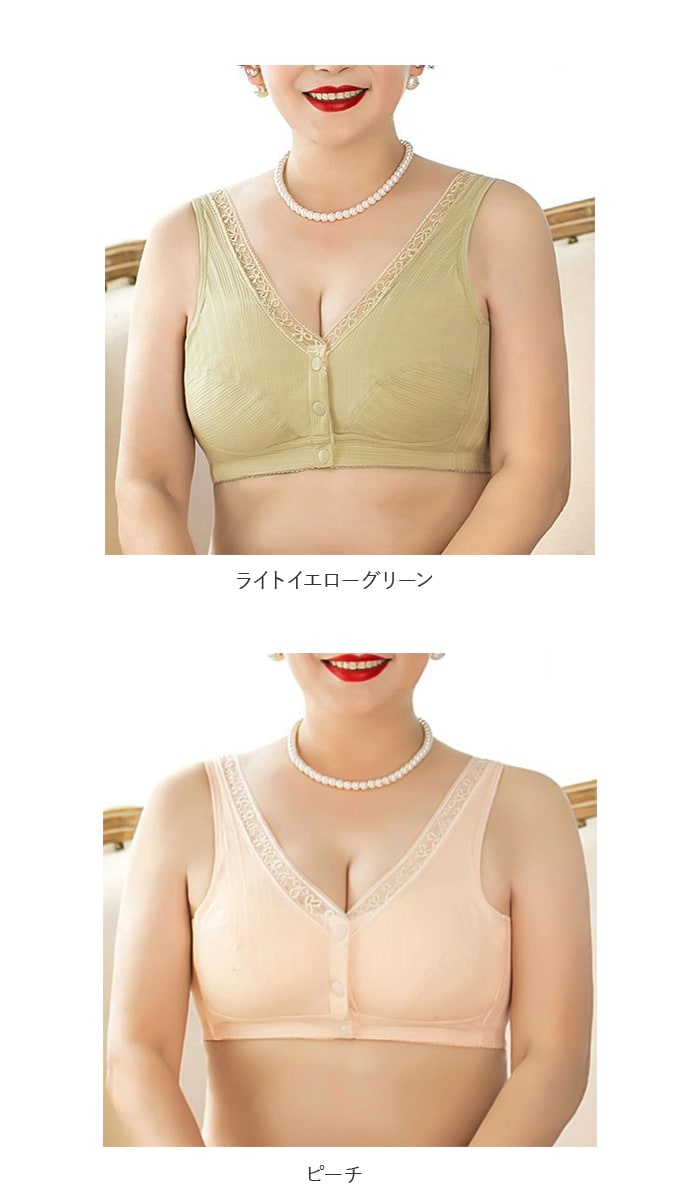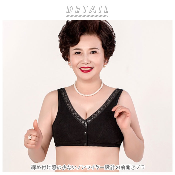 | 商品説明 | 1日中ストレスフリー♪締め付け感の少ないノンワイヤー設計の前開きブラ。背中に手をまわす必要がなくカンタンにブラを着脱できる、スナップボタン式の前開きタイプ。肩が痛くなりにくい幅広ストラップを採用。吸湿・通気性に優れた綿混紡素材を使用しているので着心地が良く、お肌にも優しい◎普段使いはもちろん、授乳ブラとしても活躍! |