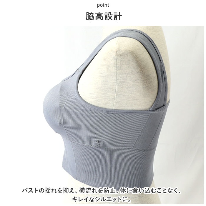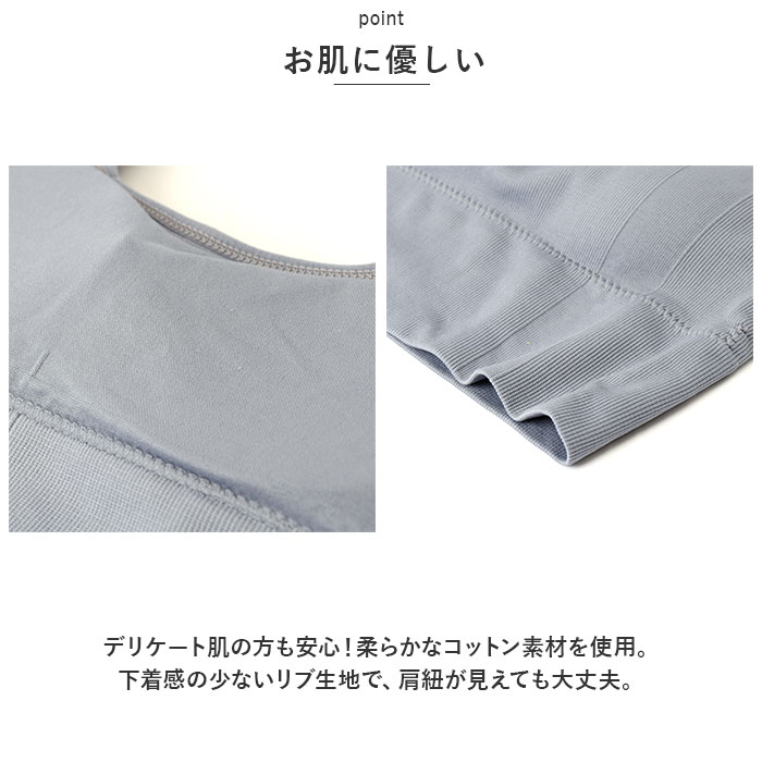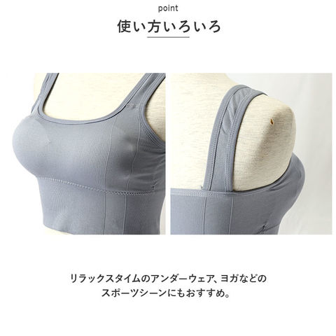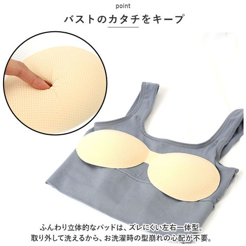 | 商品説明 | 色んなシーンで活躍!ホールド感と着心地の良さを兼ね備えたブラトップが登場。【締めつけ感のないノンワイヤータイプ】窮屈感が苦手な方にぴったり!伸縮性もあり、ストレスフリーな付け心地◎【バストのカタチをキープ】ふんわり立体的なパッドは、ズレにくい左右一体型。取り外して洗えるから、お洗濯時の型崩れの心配が不要。【脇高設計】バストの揺れを抑え、横流れを防止。体に食い込むことなく、キレイなシルエットに。【抜群のフィット感】アンダー部分が広めのミディアム丈で、安定性をキープ!フロントもバックも下着の凹凸感がないので、トップスに響きにくいのもポイント♪【お肌に優しい】デリケート肌の方も安心!柔らかなコットン素材を使用。下着感の少ないリブ生地で、肩紐が見えても大丈夫。【着脱ラクチン】ホックなどがなく、頭からすっぽり被るだけ!【使い方いろいろ】リラックスタイムのアンダーウェア、ヨガなどのスポーツシーンにもおすすめ。 |