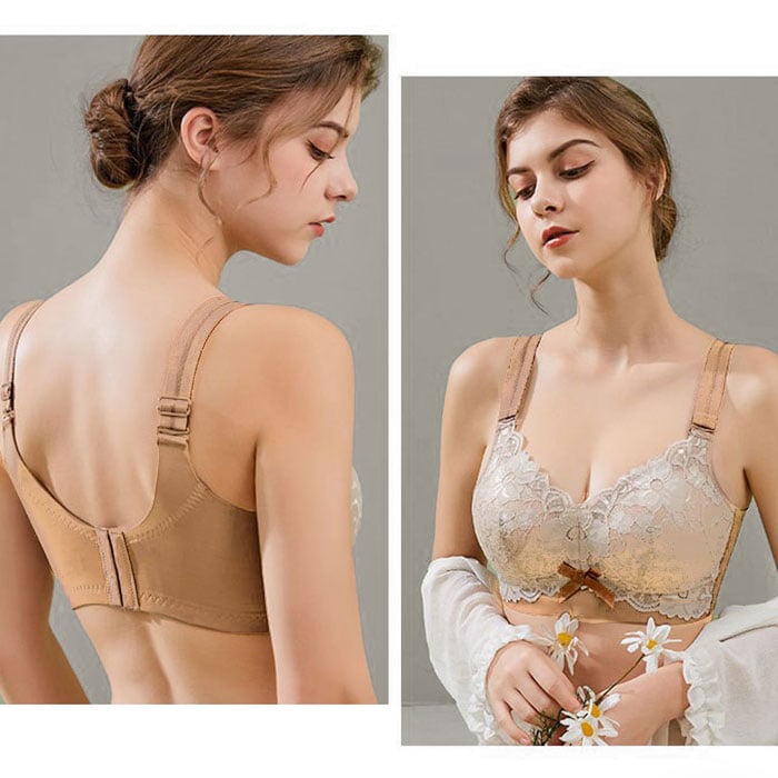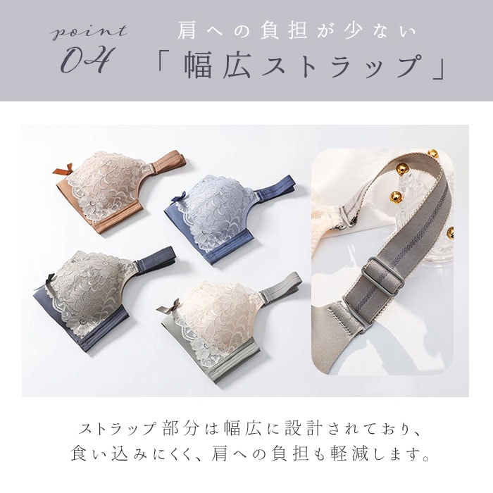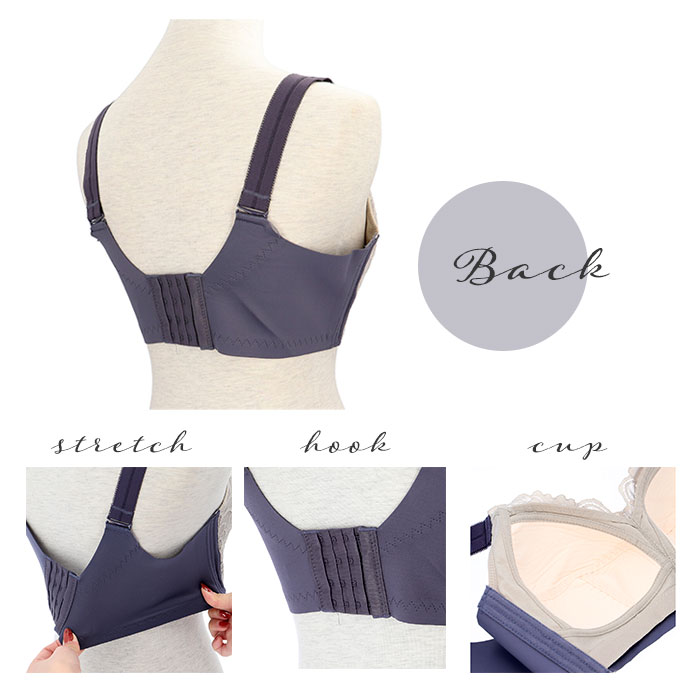 | 商品説明 | バストのボリュームを抑えて、小さく見せてくれるブラ♪【フルカップタイプ】バスト全体をしっかり包み込んで、バストトップが目立ちにくい仕様。【脇高設計】バストの揺れを抑え、横流れを防止。【4段階サイズ調節OK】背面ホックで着脱。自分サイズにフィット!【幅広ストラップ】食い込みにくく、肩にかかる負担を軽減。【背中までホールド】サイドから背面にかけても幅広設計。U字のバックラインで、いや~なズレを防いでくれるのが嬉しい!【上品さをプラス】フロントにレース素材を重ねた女性らしいデザイン。リボンがアクセントに♪ |