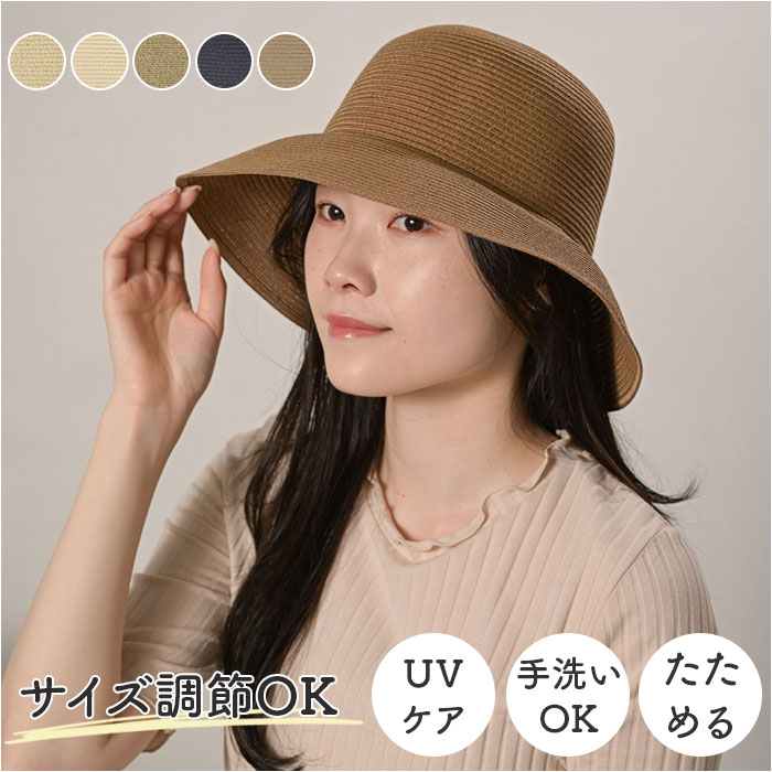 | 商品説明 | サイズ調整可能・あご紐用ループ付き・たためる・洗濯機で洗える内側にサイズ調整マジックテープが付いているので、55.5cm~57.5cmまで頭周りのサイズ調整が可能。風の強い日などに便利なあご紐用のループが付き。※あご紐付属なし軽くて柔らかい素材を使用しているので、折りシワが付きにくく、鞄に入れていつでも取り出しOK。洗濯機で丸洗いが可能。※ネットをご使用の上、一点のみで水洗いまたは少量の衣料用洗剤で洗濯。洗濯後は形を整えて陰干しでの乾燥。 |