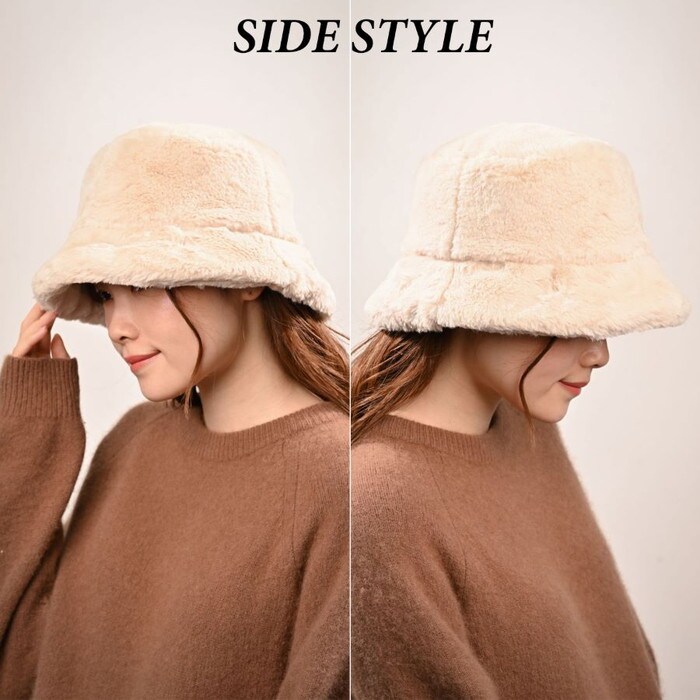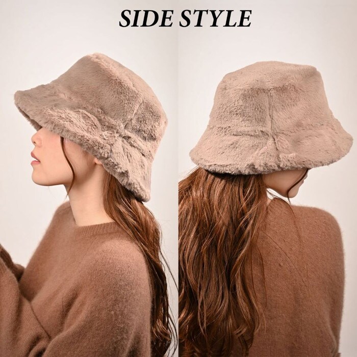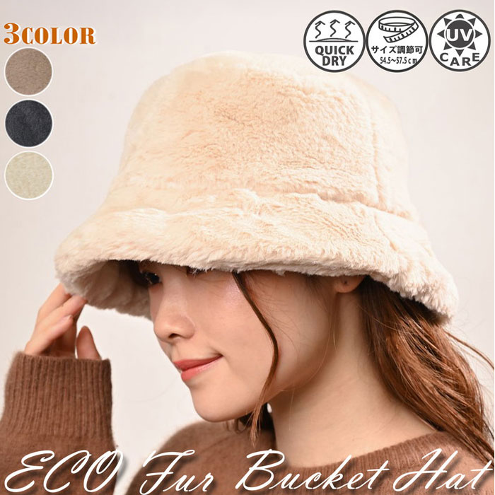 | 商品説明 | ふわふわボリュームのあるエコファーバケット。サイズ調整機能付きで54.5cmから57.5cmに対応。 |