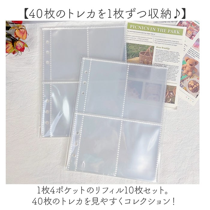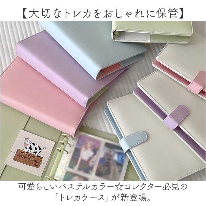 | 商品説明 | 【大切なトレカをおしゃれに保管】コレクター必見☆可愛らしいクリアカラーのケース&リフィルのセット。《トレカケース》【落ち着きがあり大人女子にぴったり】手触り柔らかなPU素材に、ラメ感をプラスしたカラーリング。おしゃれに保管♪【ワンタッチで簡単オープン】マグネット式のベルトで開閉がスムーズ◎ピタッと留まる手帳型タイプ。【A5サイズのリフィル対応バインダー】内側中央に6つ穴を配置。セットのリフィルをカチッとひとまとめ。【サッと取り出せるサイドポケット】ケース内側サイドに、3つのカードポケットを配置。クリアポケットにはお気に入りの1枚を♪【お好みで選べるカラー】自分の好みや推しカラーをチョイス☆コレクションが増えたら、色違いで揃えるのもおすすめ。《リフィル》【40枚のトレカを1枚ずつ収納♪】・1枚4ポケットのリフィル10枚セット。40枚のトレカを見やすくコレクション!【上からスライドするだけの簡単作業】ポケット上部からトレカをIN。出し入れしやすく、順番を変えるなどの入れ替えもラクラク。 |